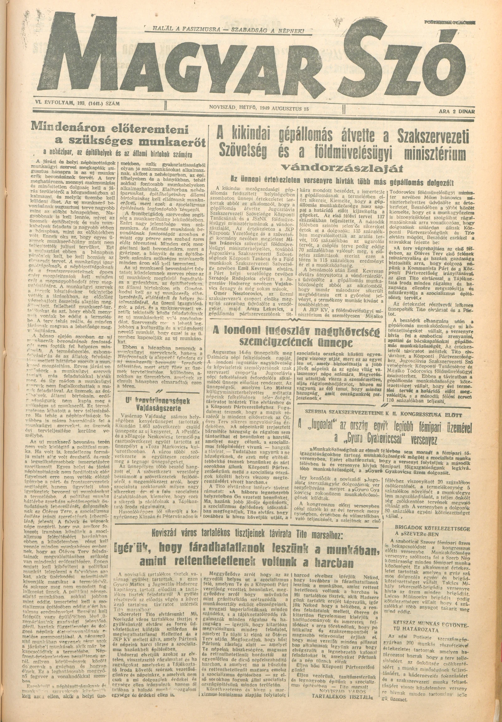 Magyar Szó, 6. évf. 1949. augusztus 15. 193. sz. 1–4. oldal