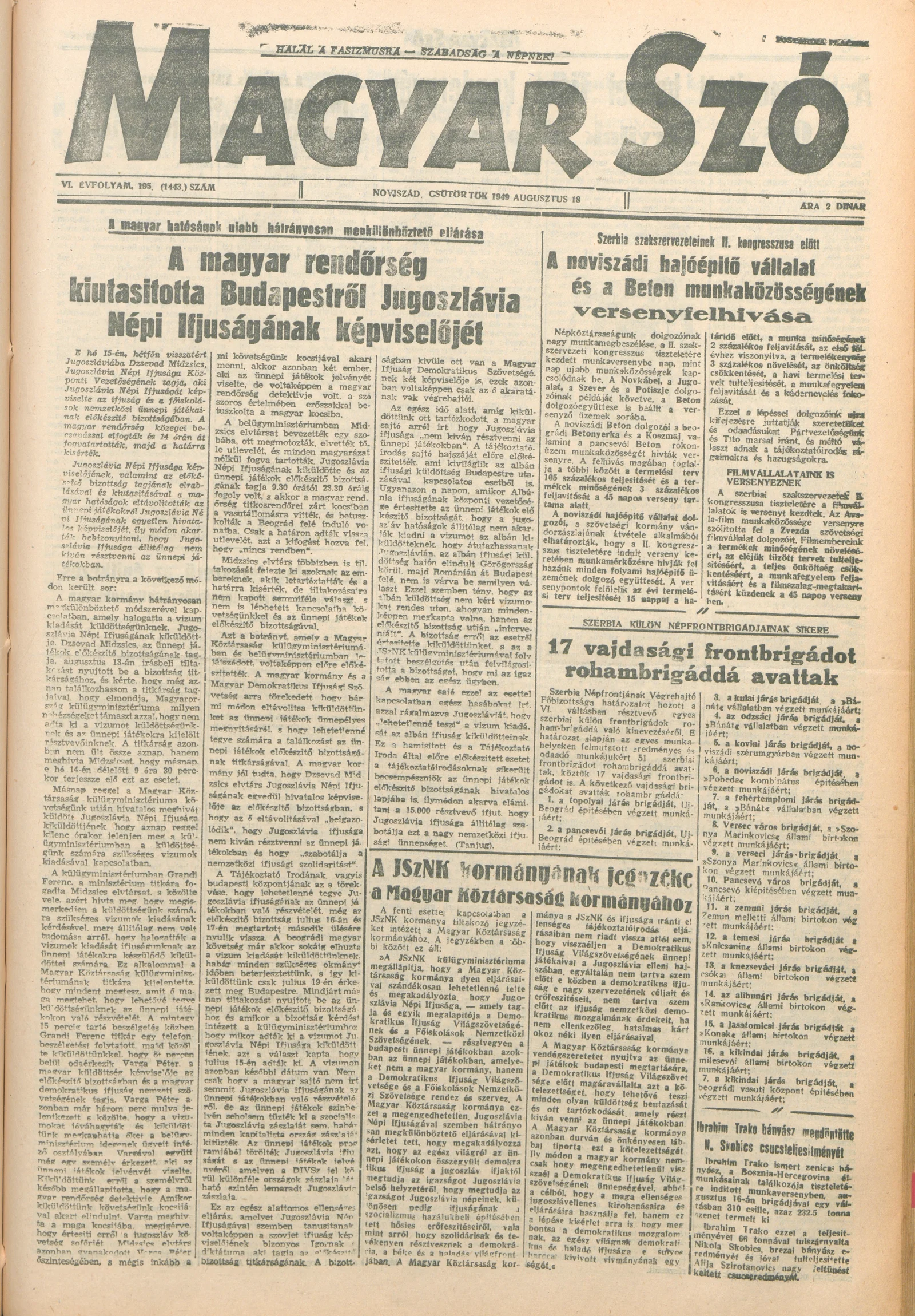 Magyar Szó, 6. évf. 1949. augusztus 18. 195. sz. 1–4. oldal