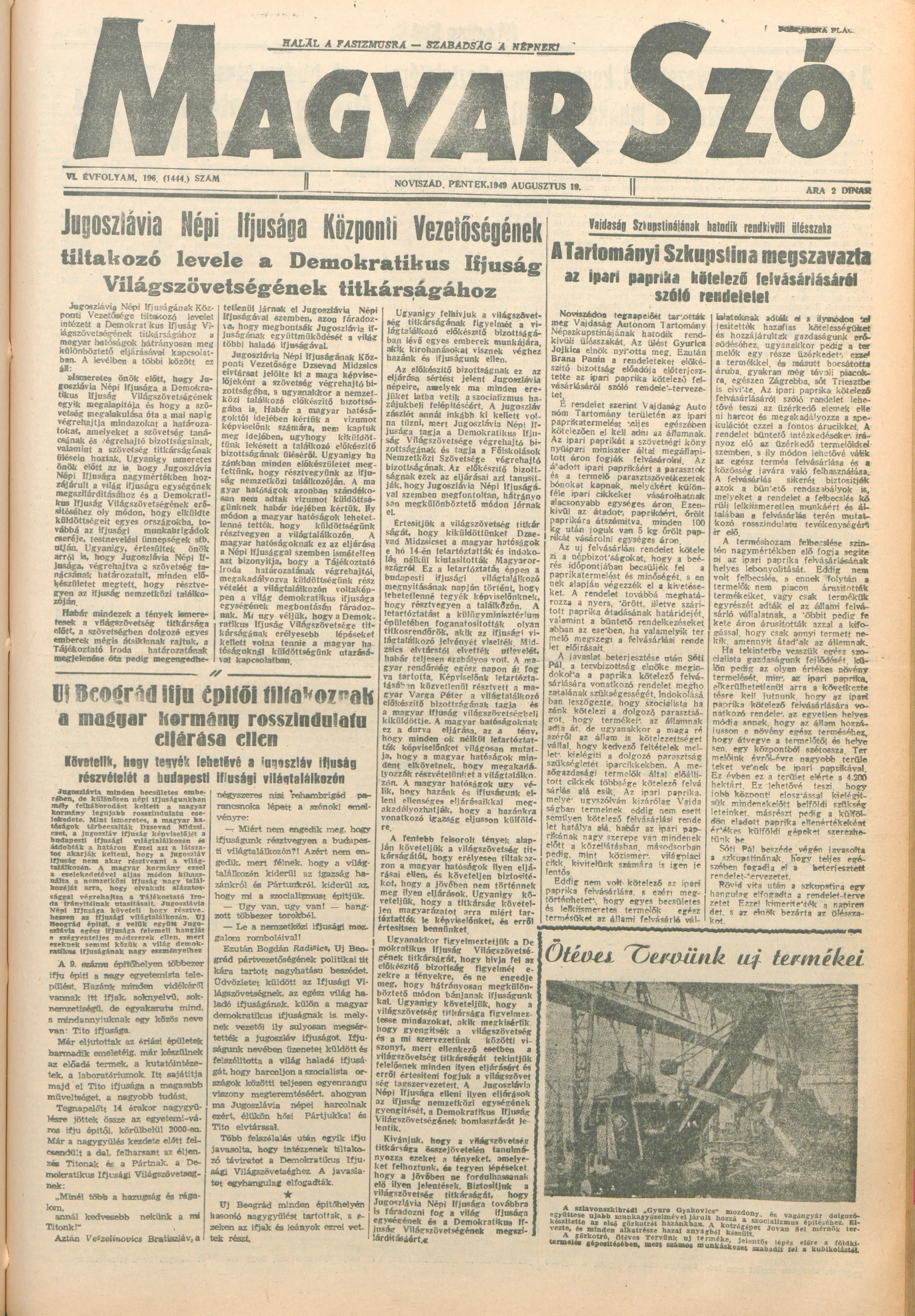 Magyar Szó, 6. évf. 1949. augusztus 19. 196. sz. 1–4. oldal