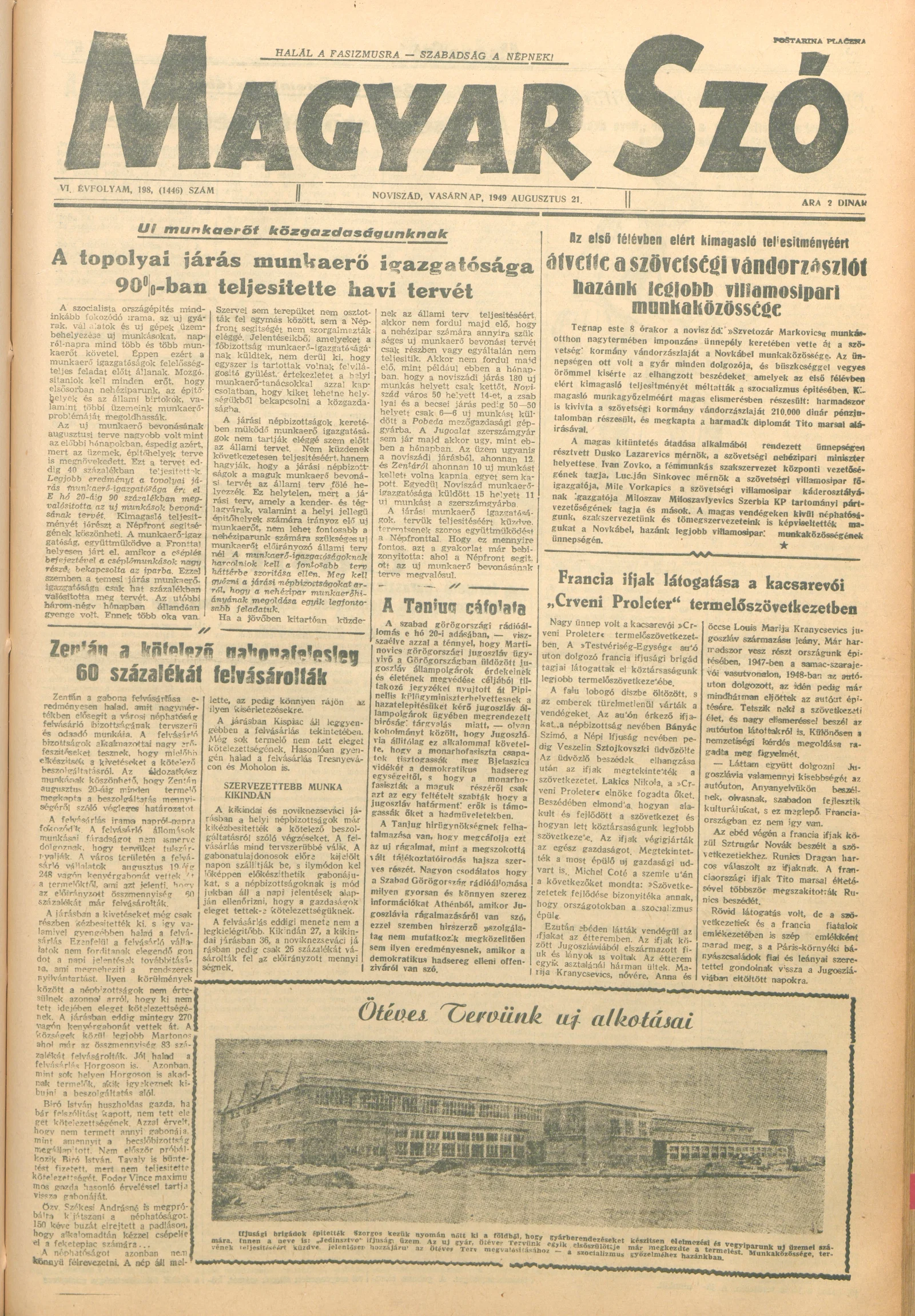 Magyar Szó, 6. évf. 1949. augusztus 21. 198. sz. 1–4. oldal