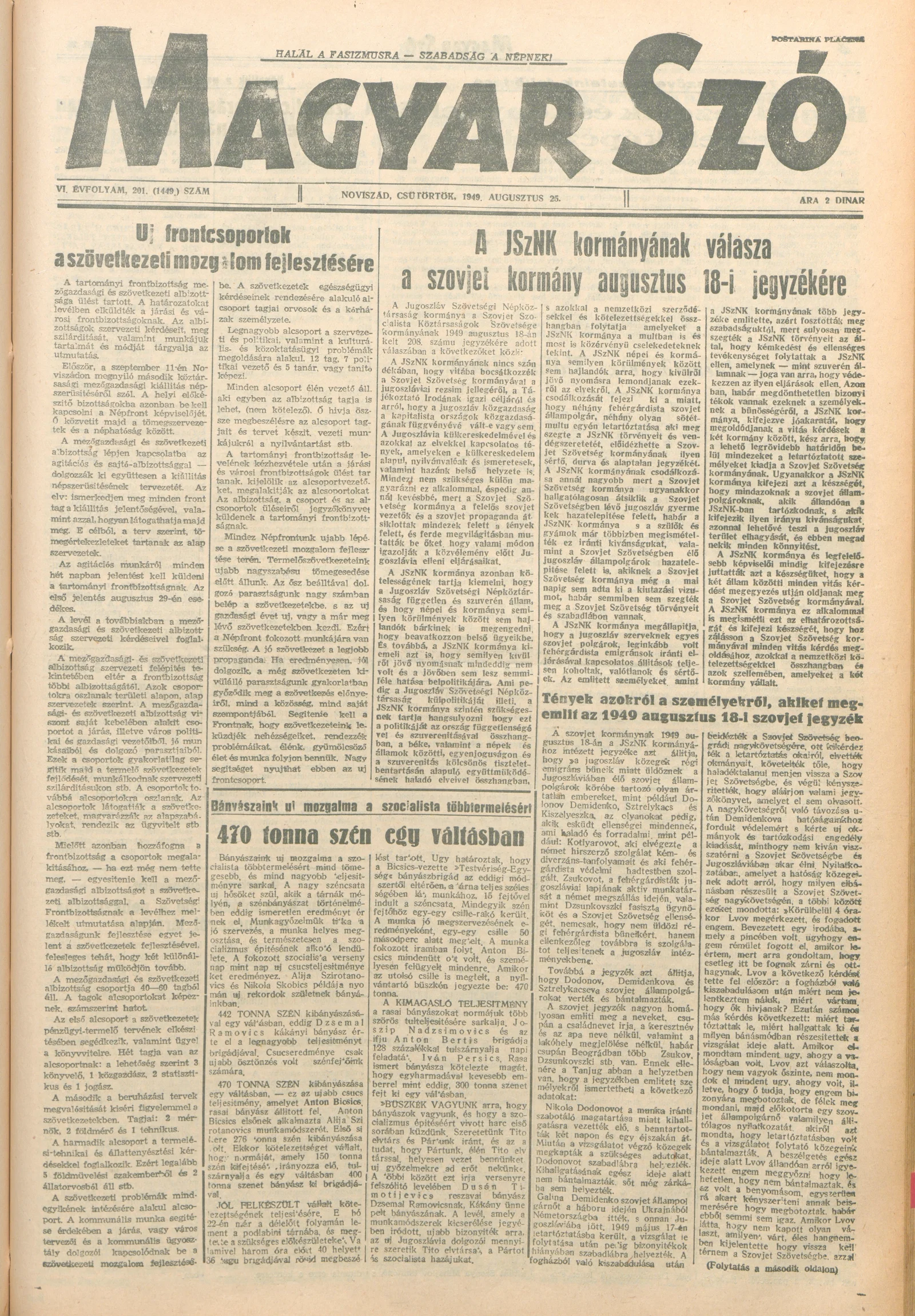Magyar Szó, 6. évf. 1949. augusztus 25. 201. sz. 1–4. oldal