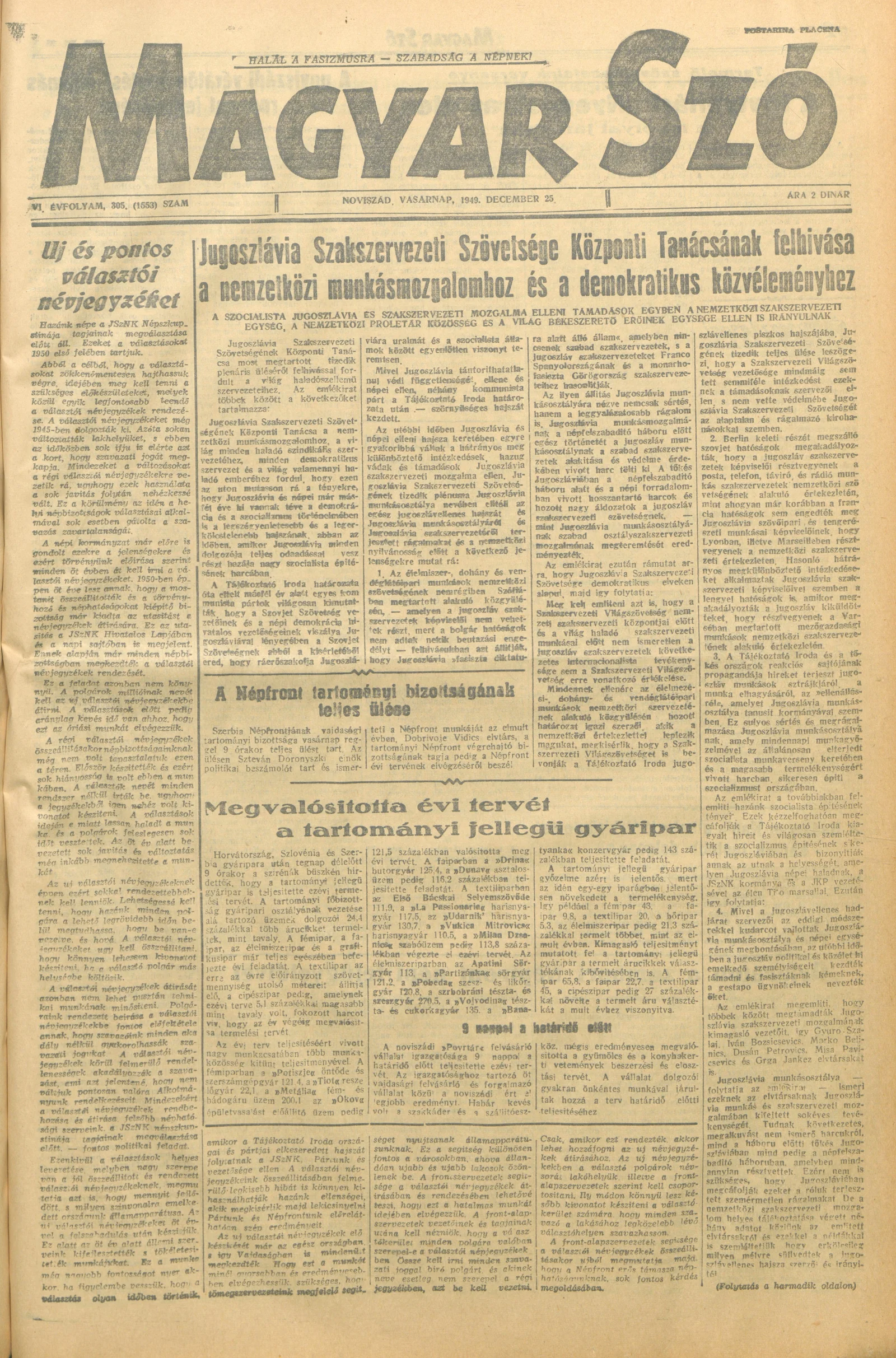 Magyar Szó, 6. évf. 1949. december 25. 305. sz. 1–4. oldal