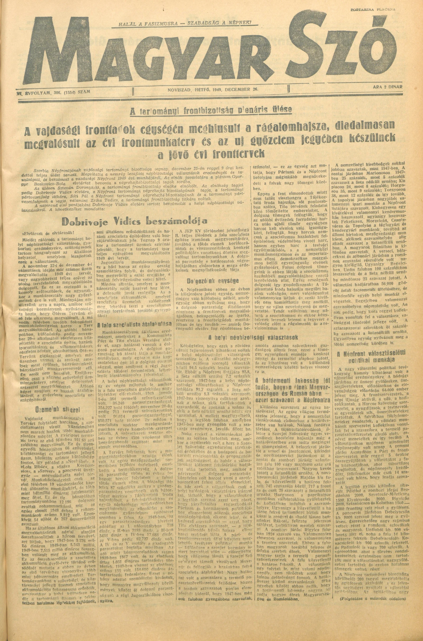 Magyar Szó, 6. évf. 1949. december 26. 306. sz. 1–4. oldal