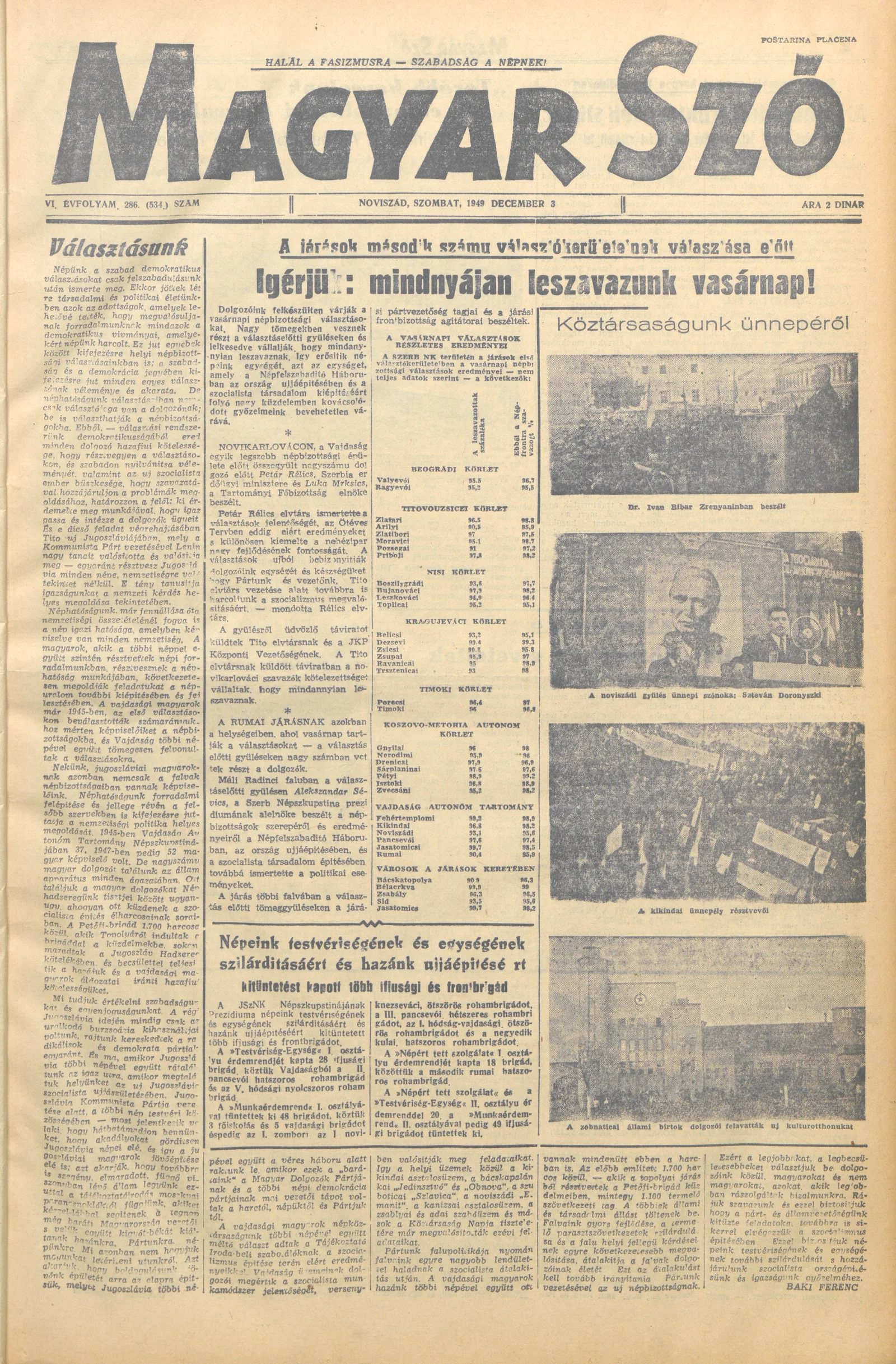 Magyar Szó, 6. évf. 1949. december 3. 286. sz. 1–4. oldal