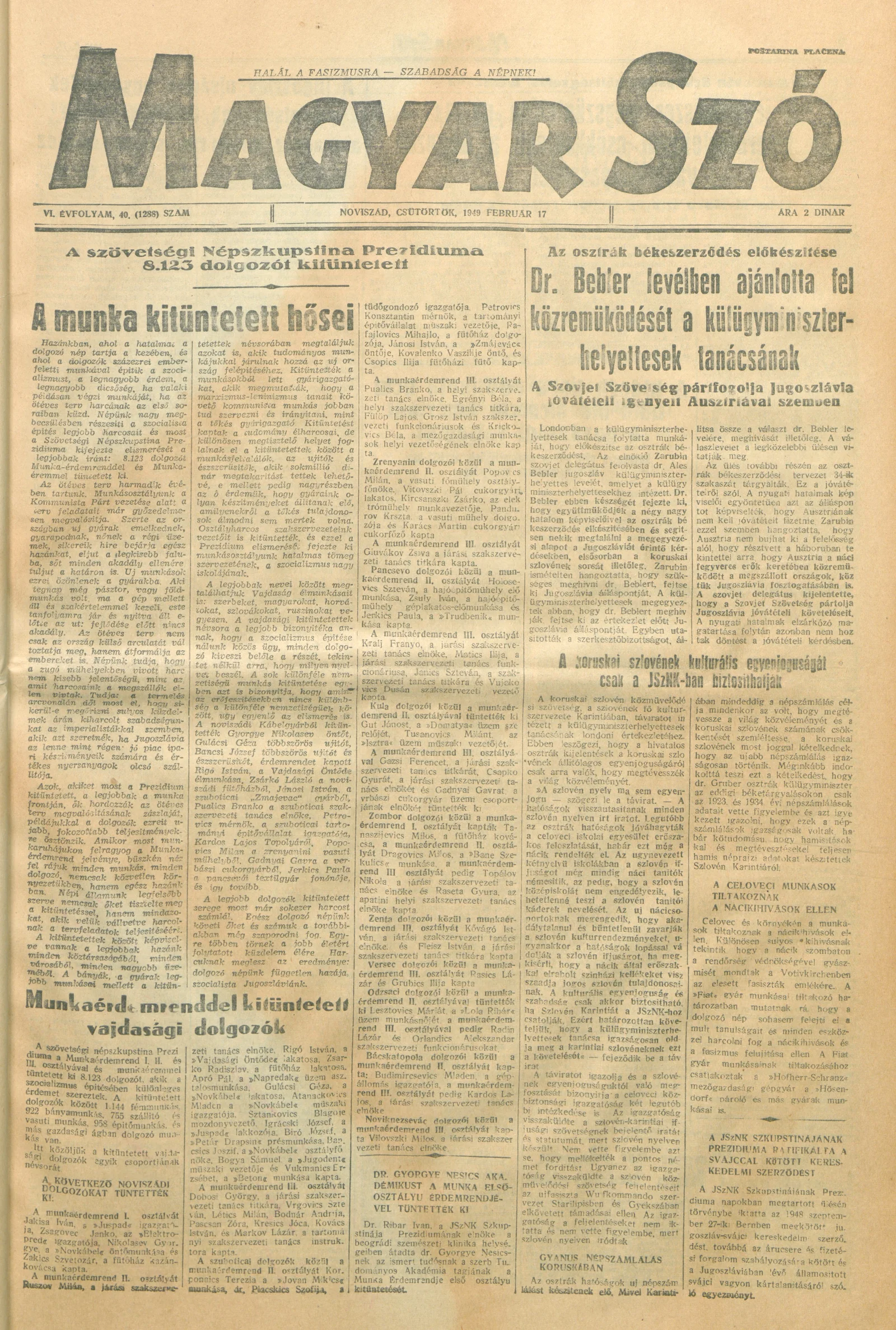 Magyar Szó, 6. évf. 1949. február 17. 40. sz. 1–4. oldal