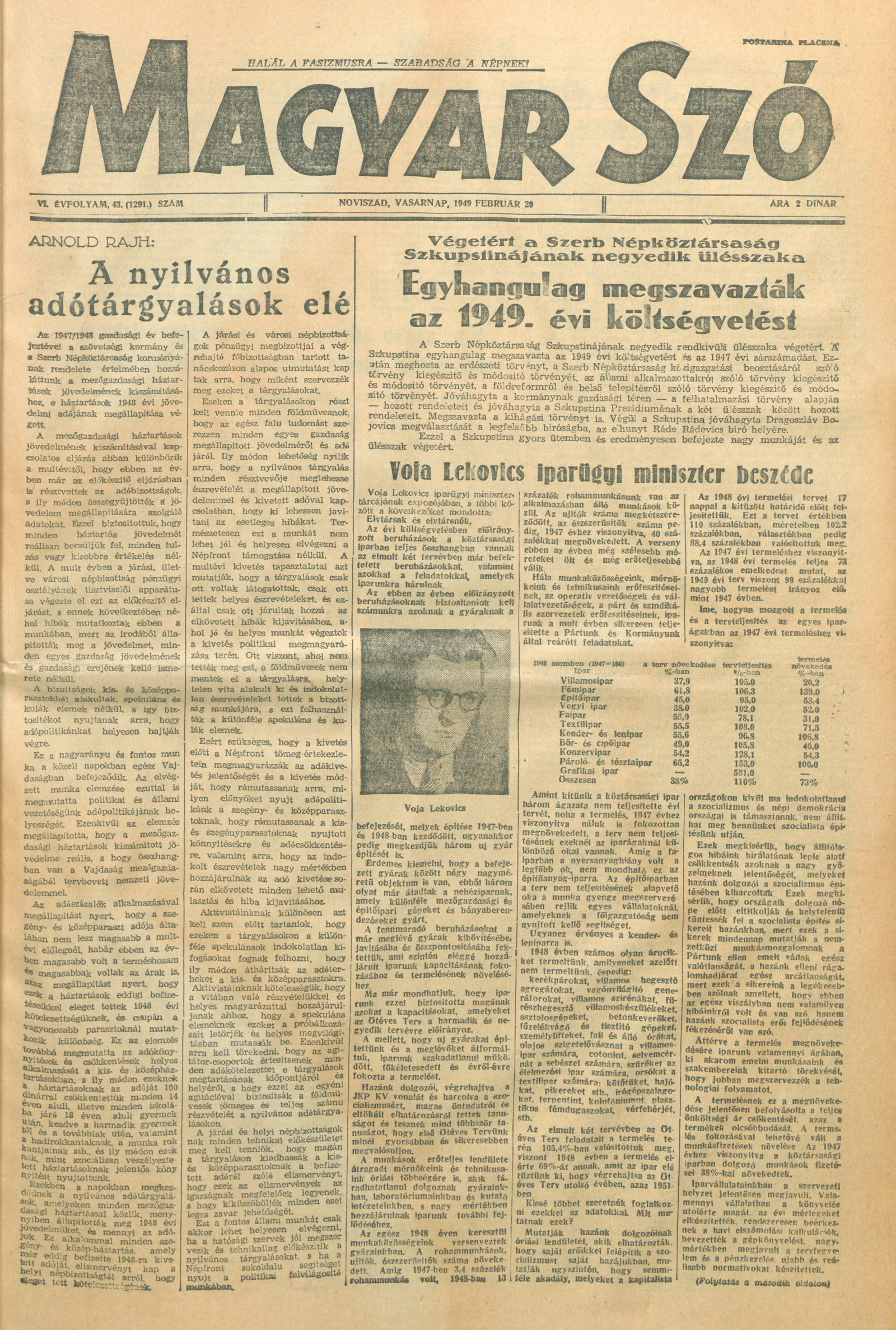 Magyar Szó, 6. évf. 1949. február 20. 43. sz. 1–6. oldal