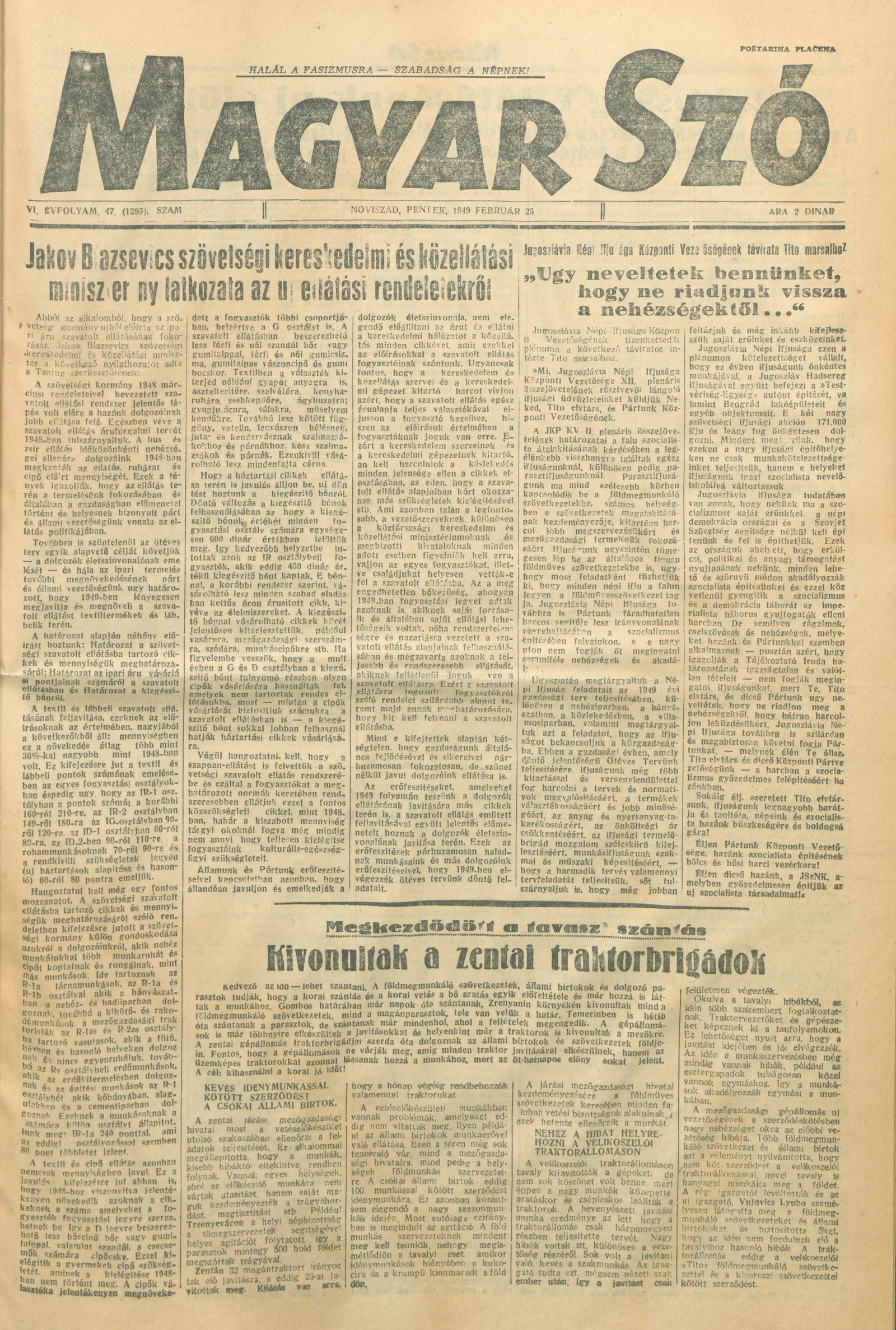 Magyar Szó, 6. évf. 1949. február 25. 47. sz. 1–4. oldal