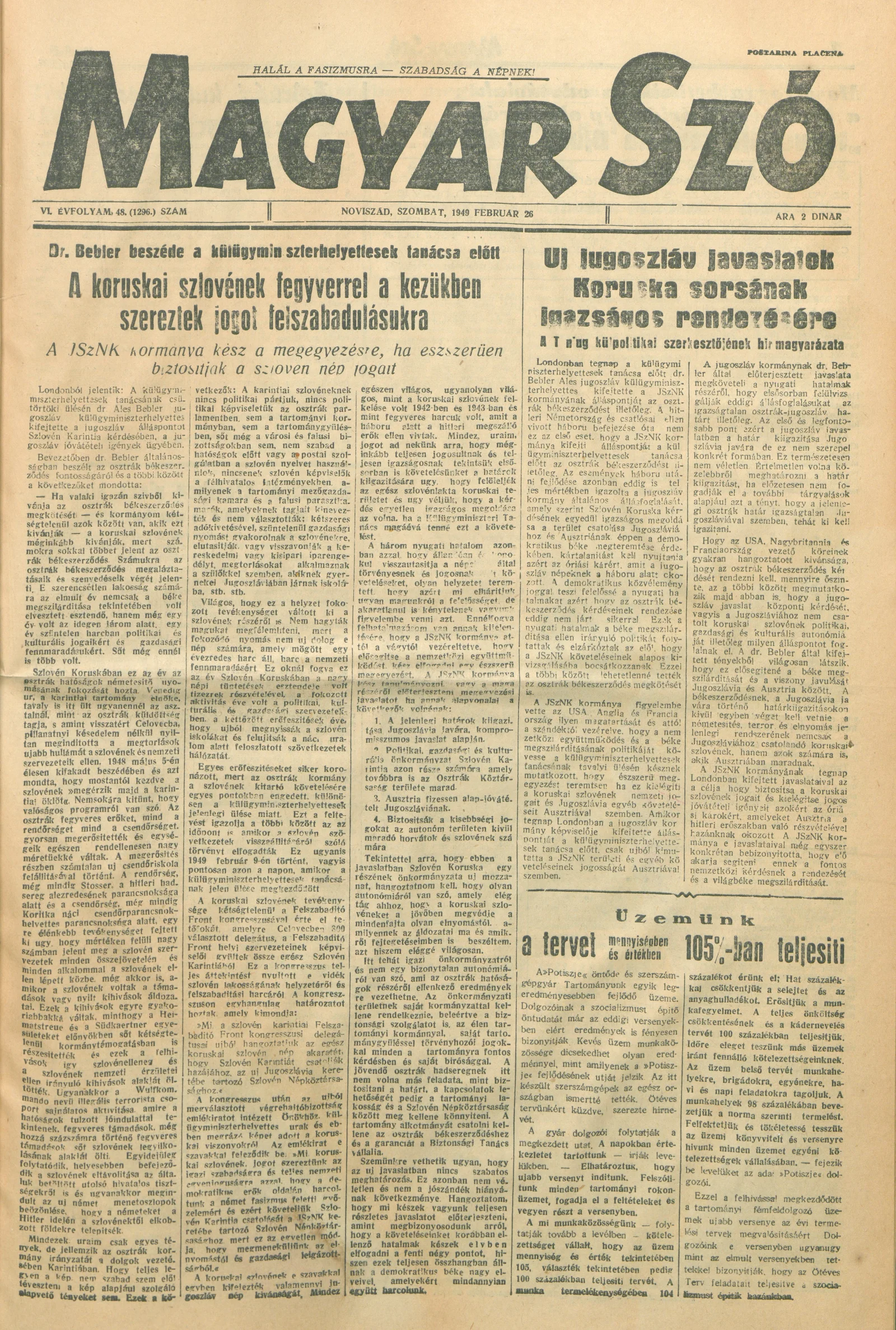 Magyar Szó, 6. évf. 1949. február 26. 48. sz. 1–4. oldal