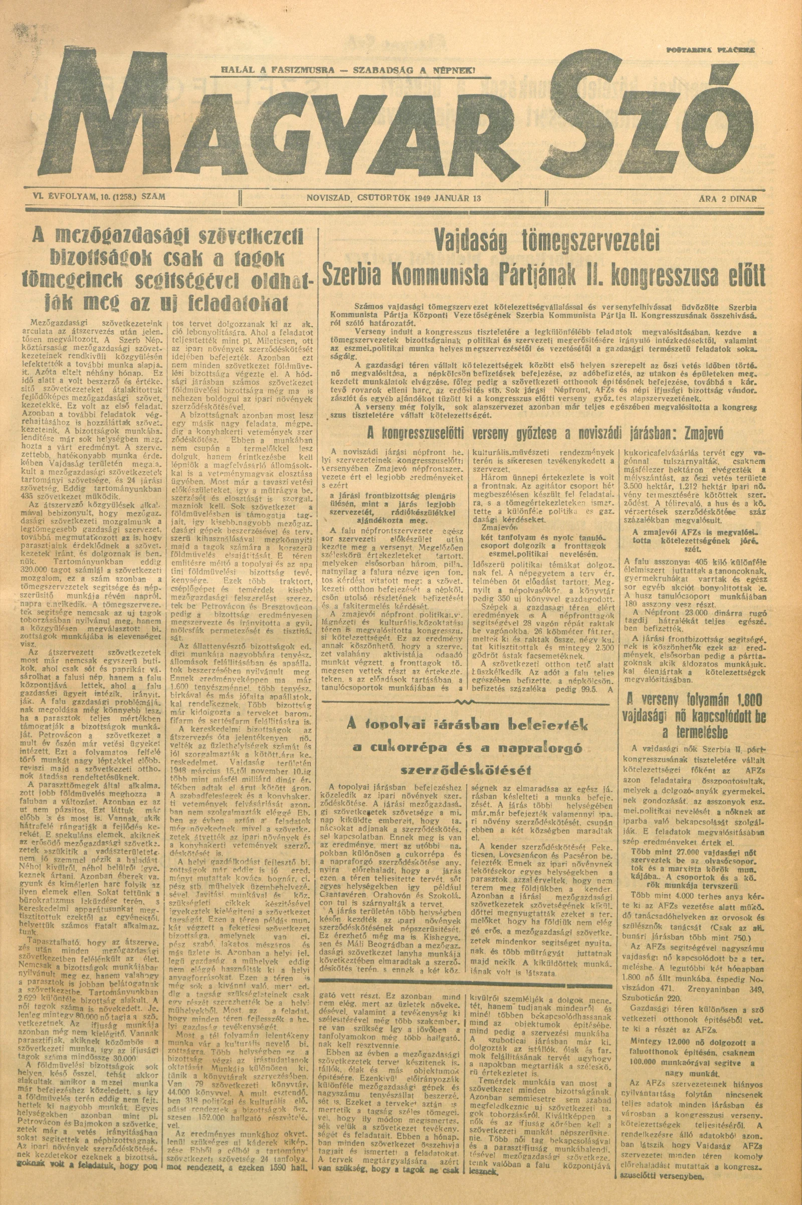 Magyar Szó, 6. évf. 1949. január 13. 10. sz. 1–4. oldal