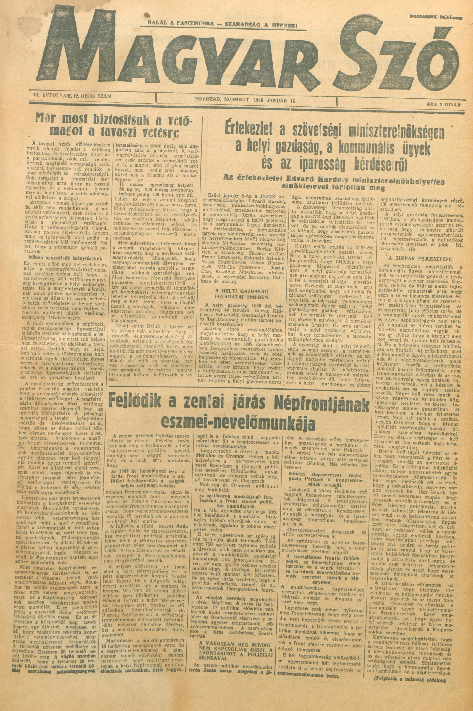 Magyar Szó, 6. évf. 1949. január 15. 12. sz. 1–4. oldal
