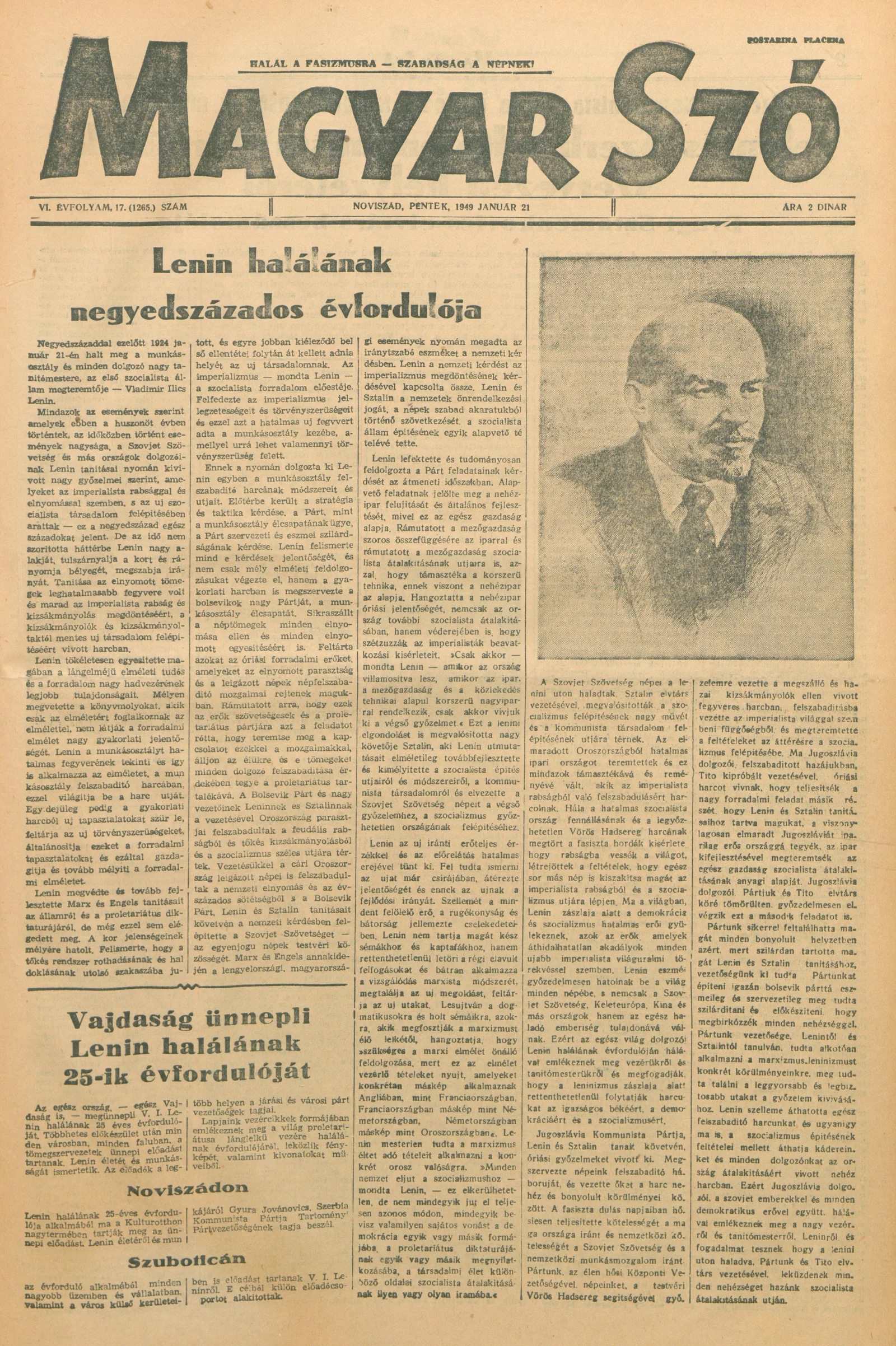 Magyar Szó, 6. évf. 1949. január 21. 17. sz. 1–8. oldal