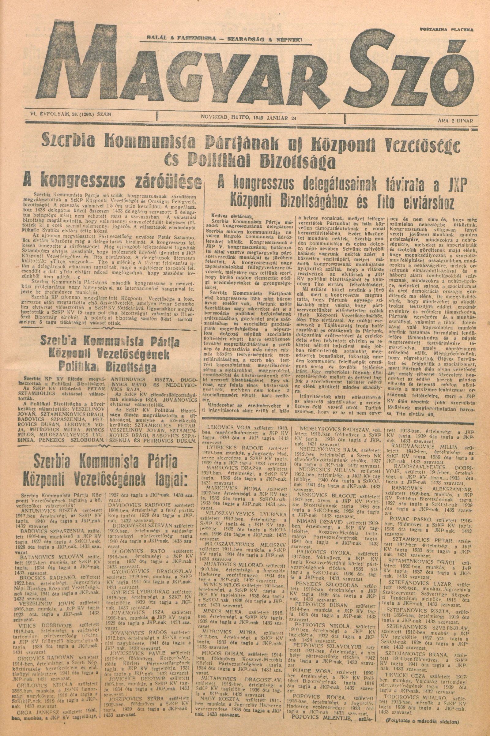 Magyar Szó, 6. évf. 1949. január 24. 20. sz. 1–8. oldal