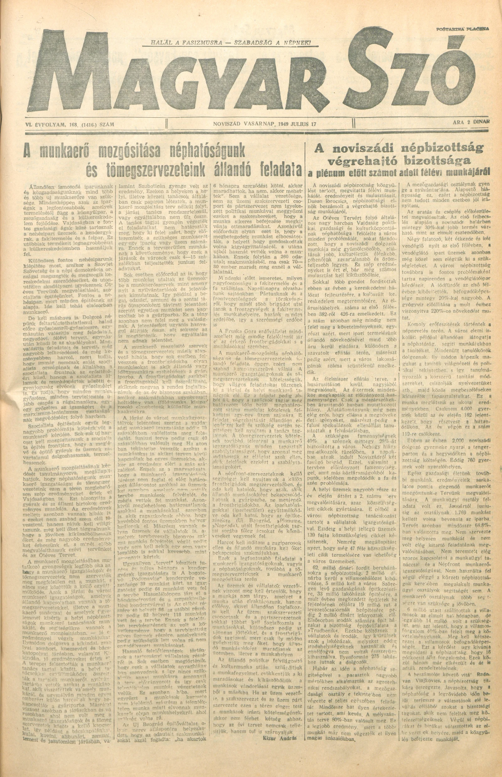 Magyar Szó, 6. évf. 1949. július 17. 168. sz. 1–4. oldal