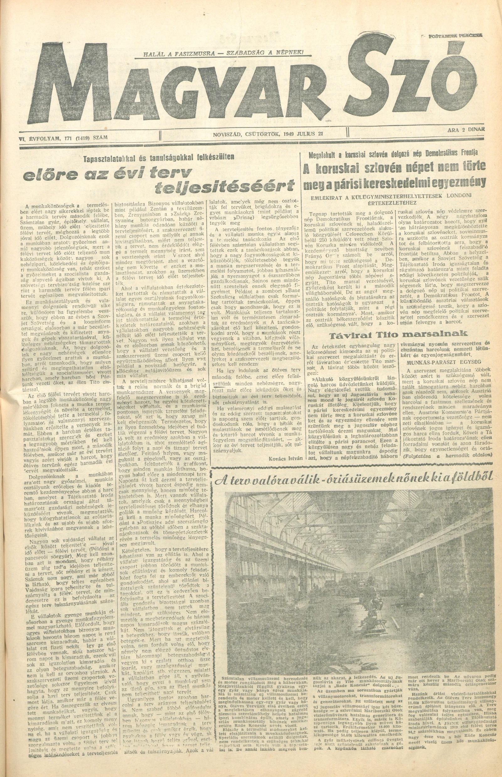 Magyar Szó, 6. évf. 1949. július 21. 171. sz. 1–4. oldal