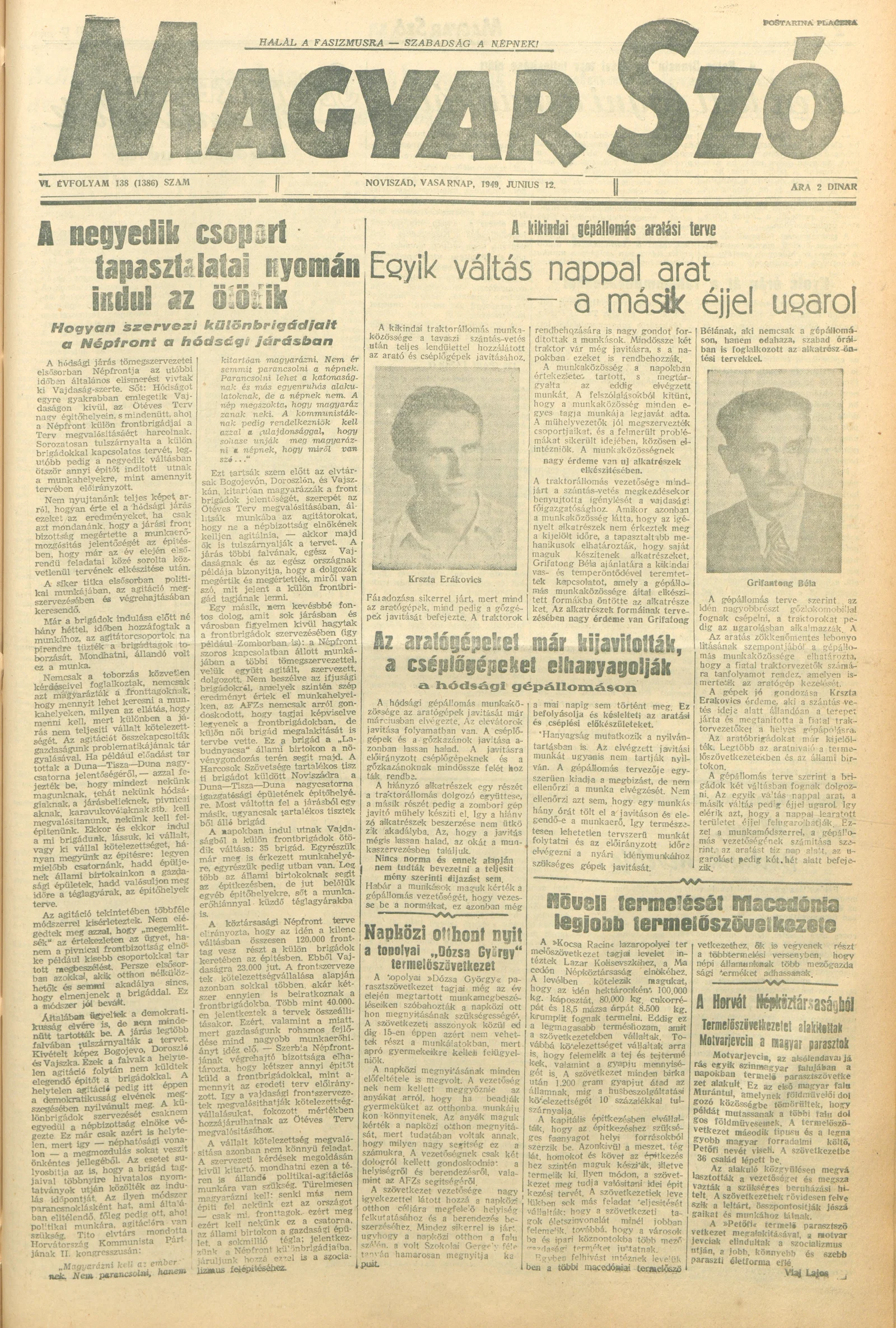 Magyar Szó, 6. évf. 1949. június 12. 138. sz. 1–4. oldal