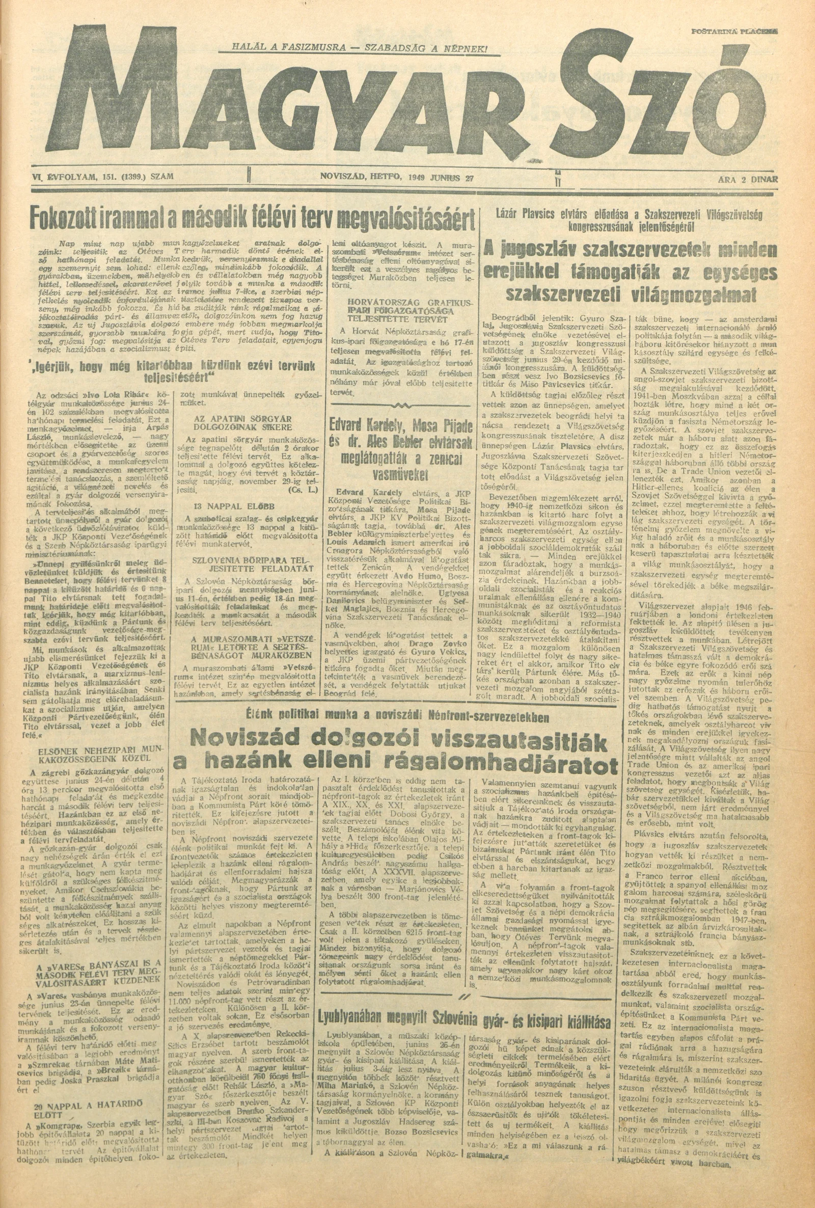 Magyar Szó, 6. évf. 1949. június 27. 151. sz. 1–4. oldal