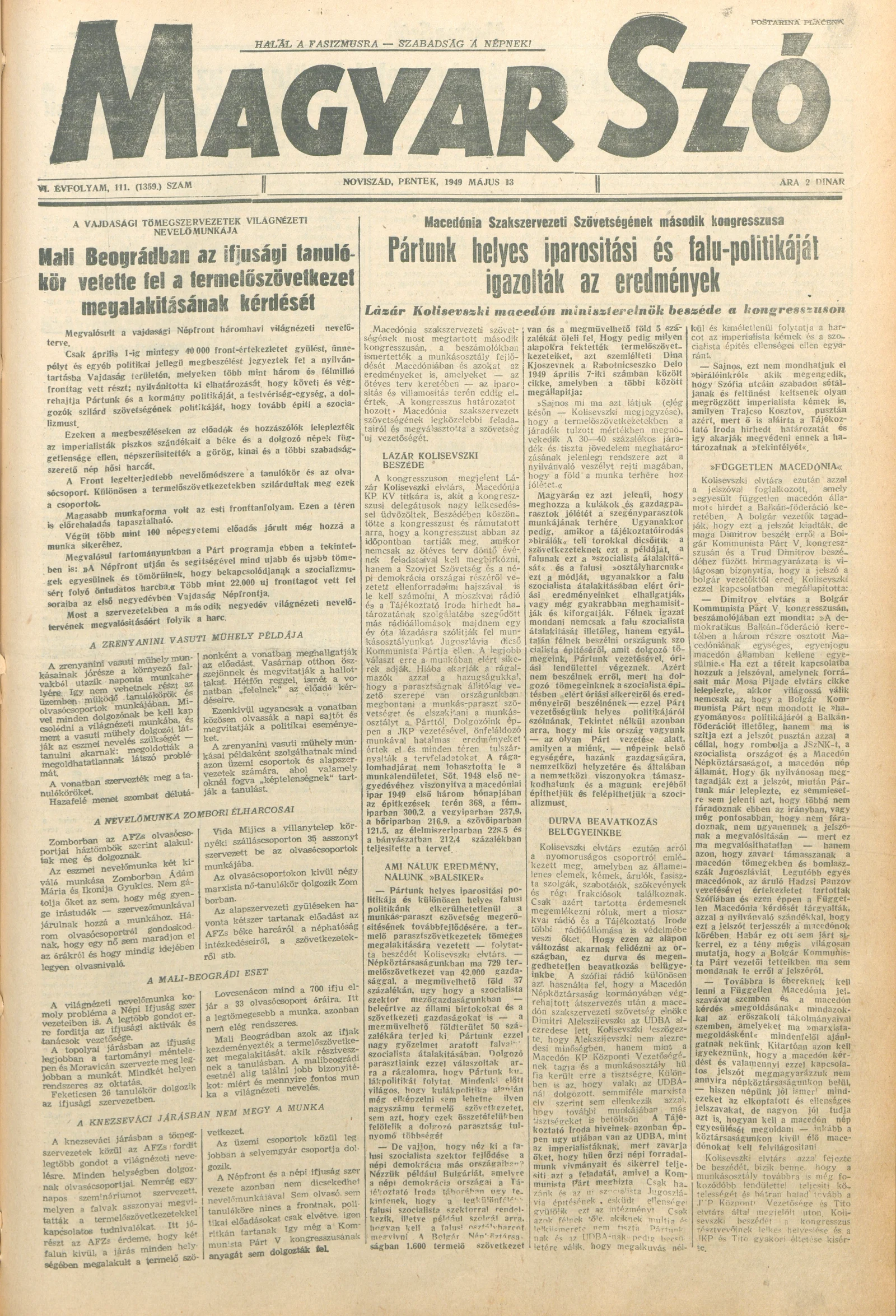 Magyar Szó, 6. évf. 1949. május 13. 111. sz. 1–4. oldal