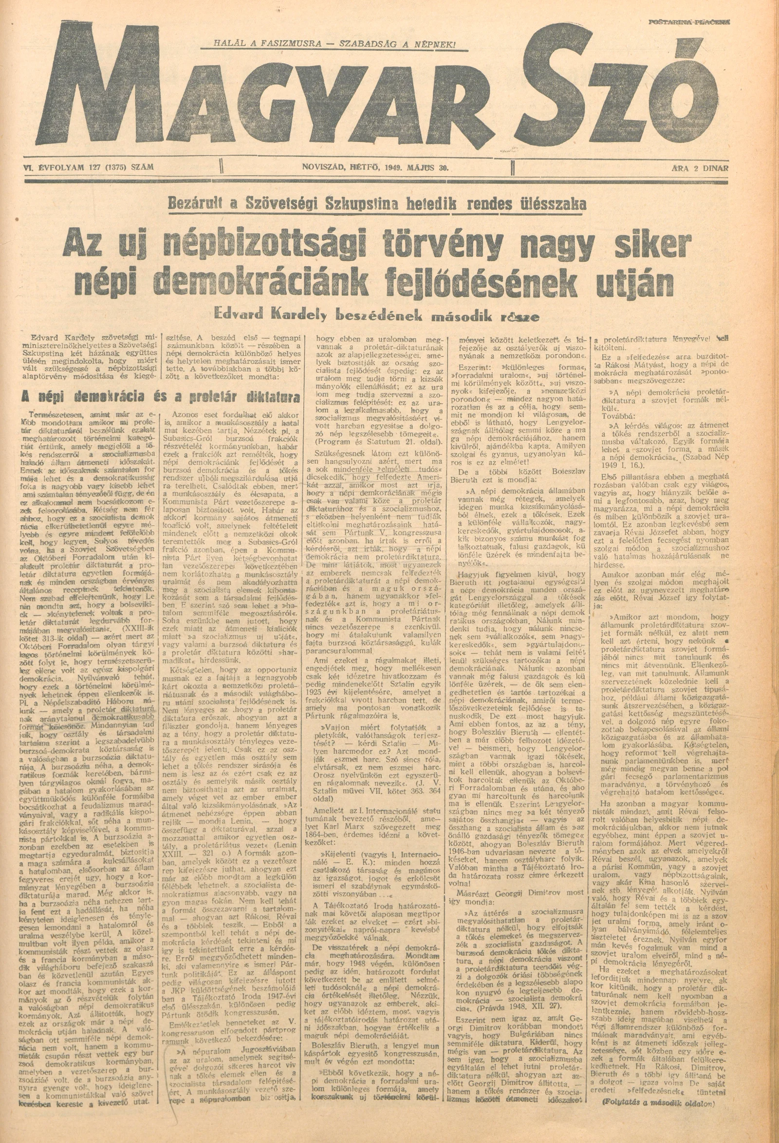Magyar Szó, 6. évf. 1949. május 30. 127. sz. 1–6. oldal