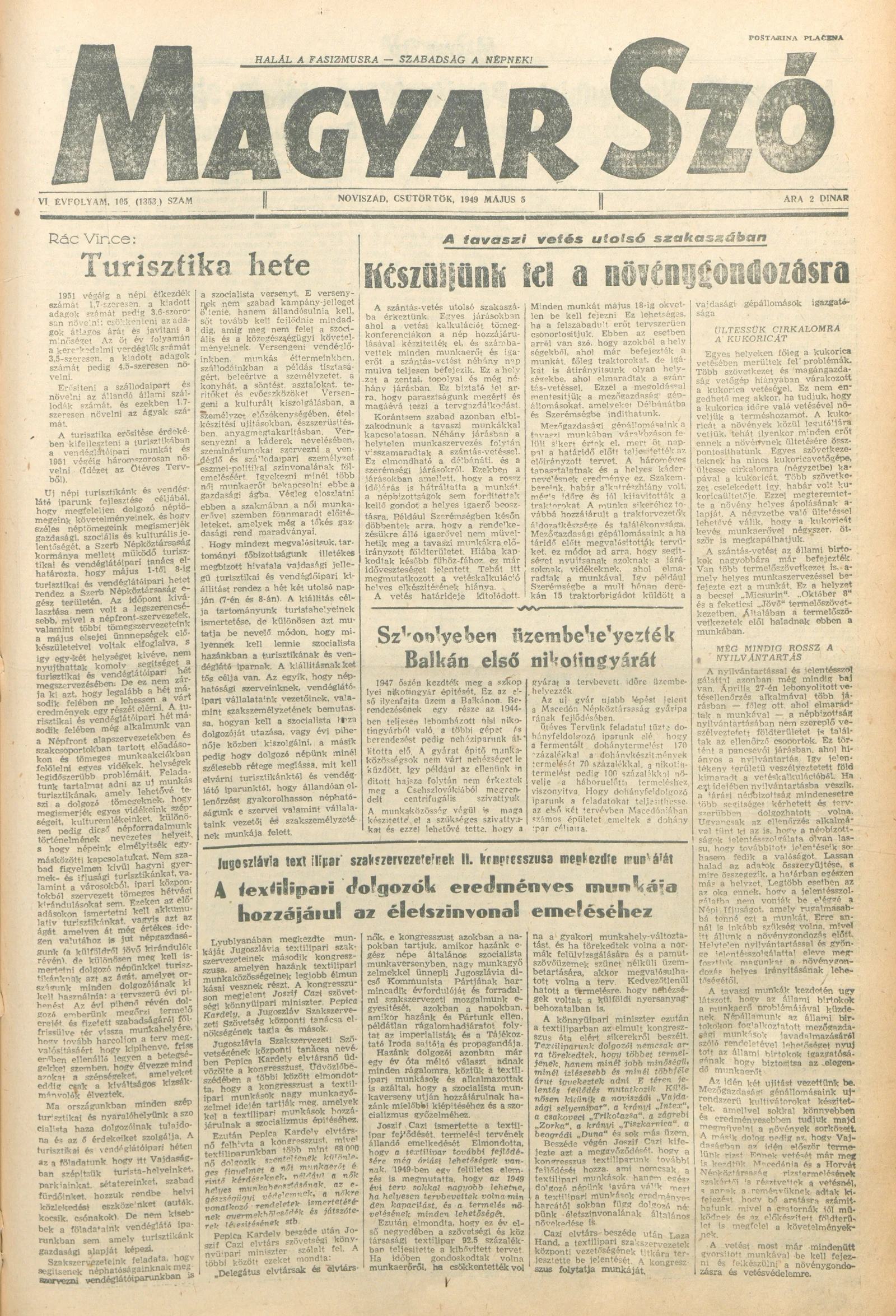 Magyar Szó, 6. évf. 1949. május 5. 105. sz. 1–4. oldal