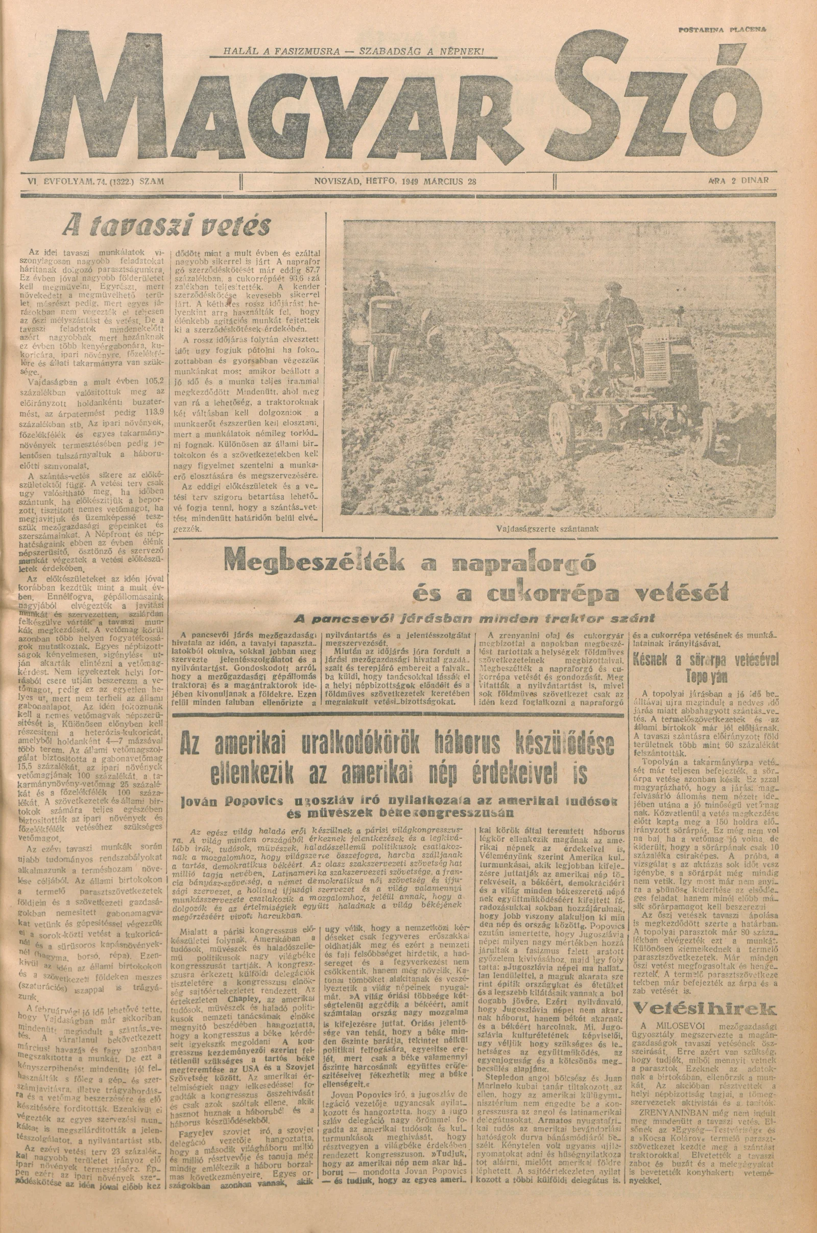 Magyar Szó, 6. évf. 1949. március 28. 74. sz. 1–4. oldal