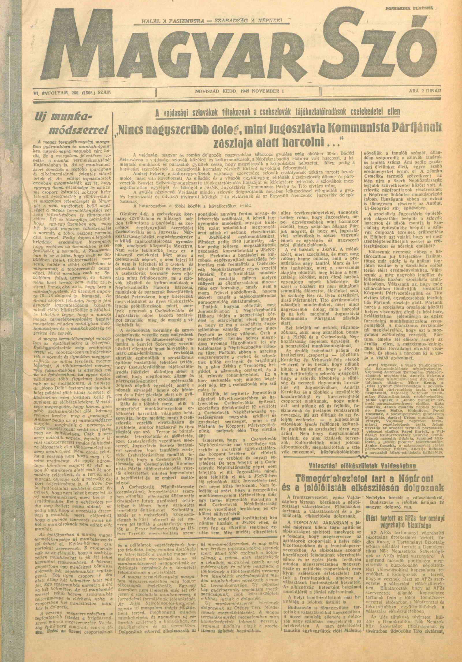 Magyar Szó, 6. évf. 1949. november 1. 260. sz. 1–4. oldal