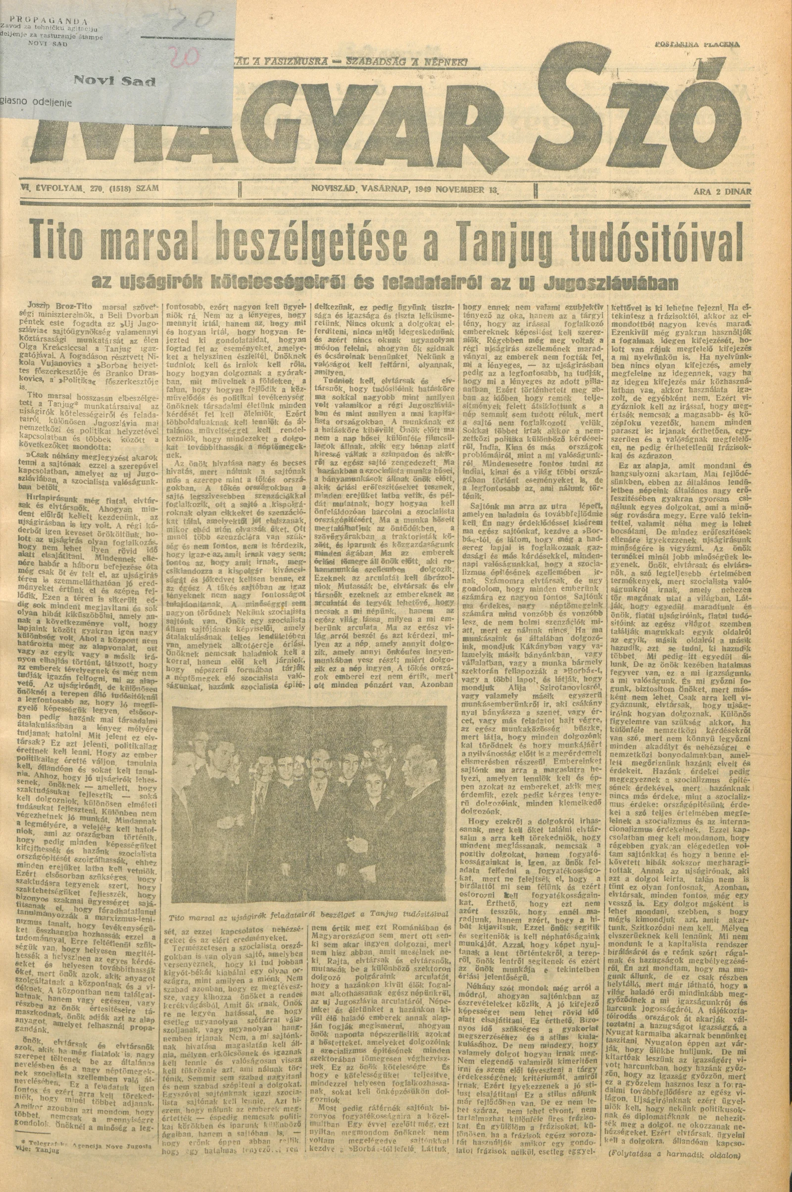 Magyar Szó, 6. évf. 1949. november 13. 270. sz. 1–4. oldal