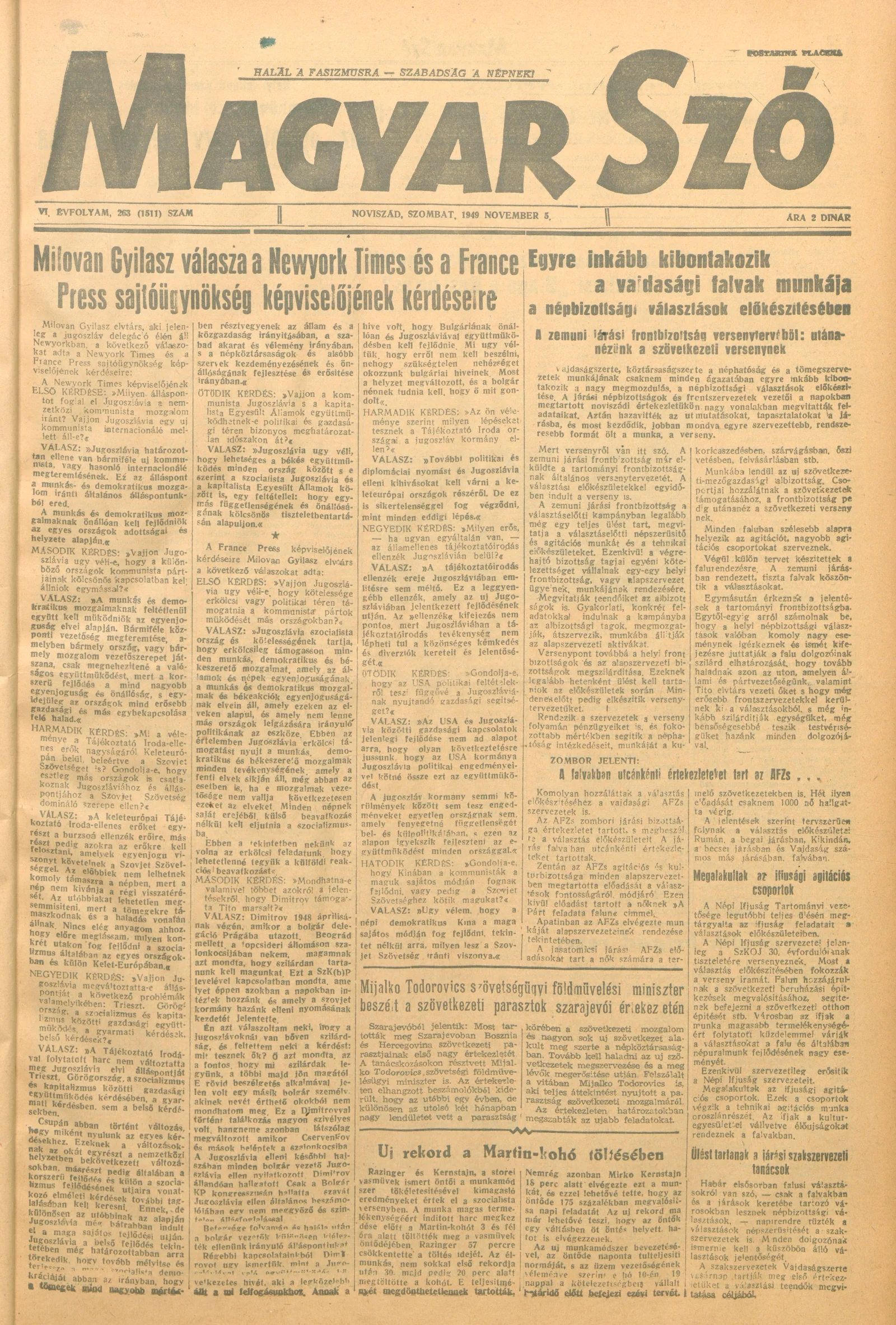 Magyar Szó, 6. évf. 1949. november 5. 263. sz. 1–4. oldal