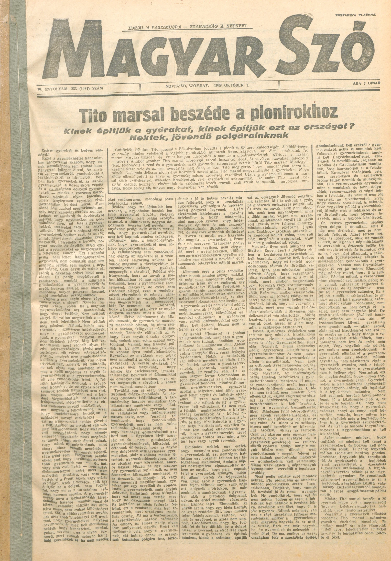 Magyar Szó, 6. évf. 1949. október 1. 233. sz. 1–4. oldal