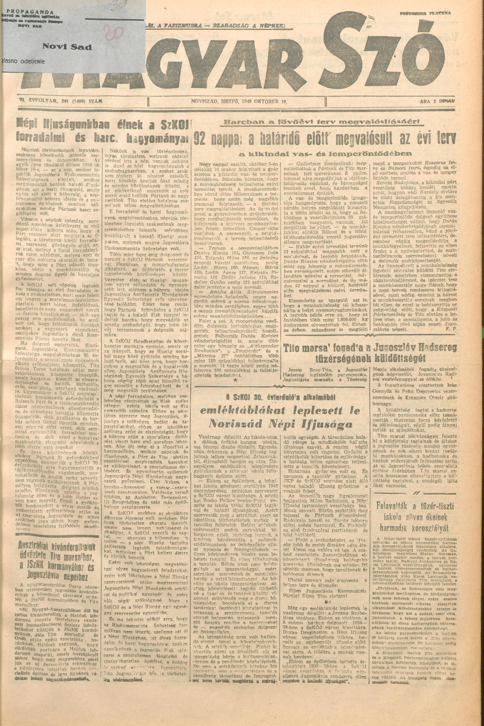 Magyar Szó, 6. évf. 1949. október 10. 241. sz. 1–4. oldal