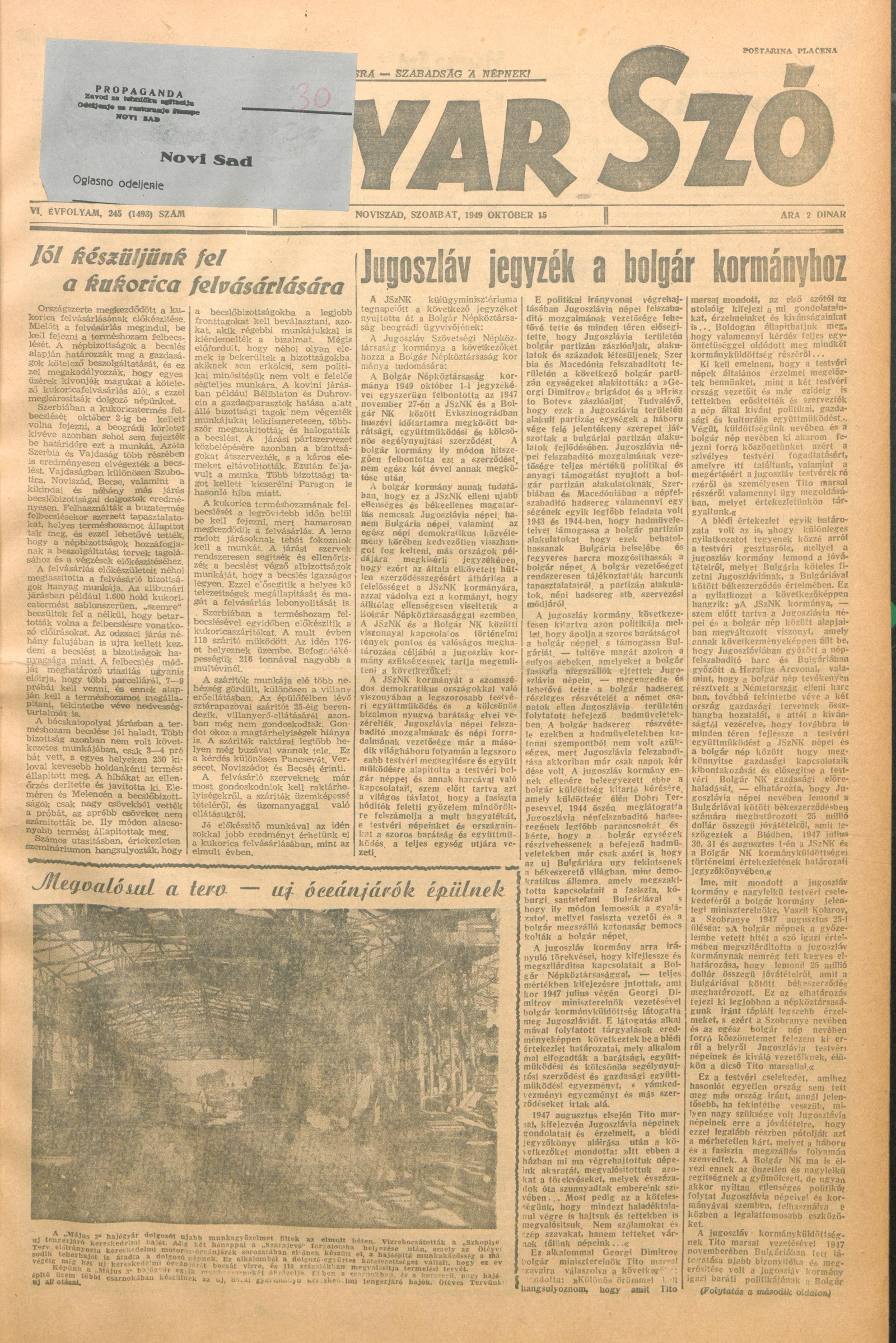 Magyar Szó, 6. évf. 1949. október 15. 245. sz. 1–4. oldal
