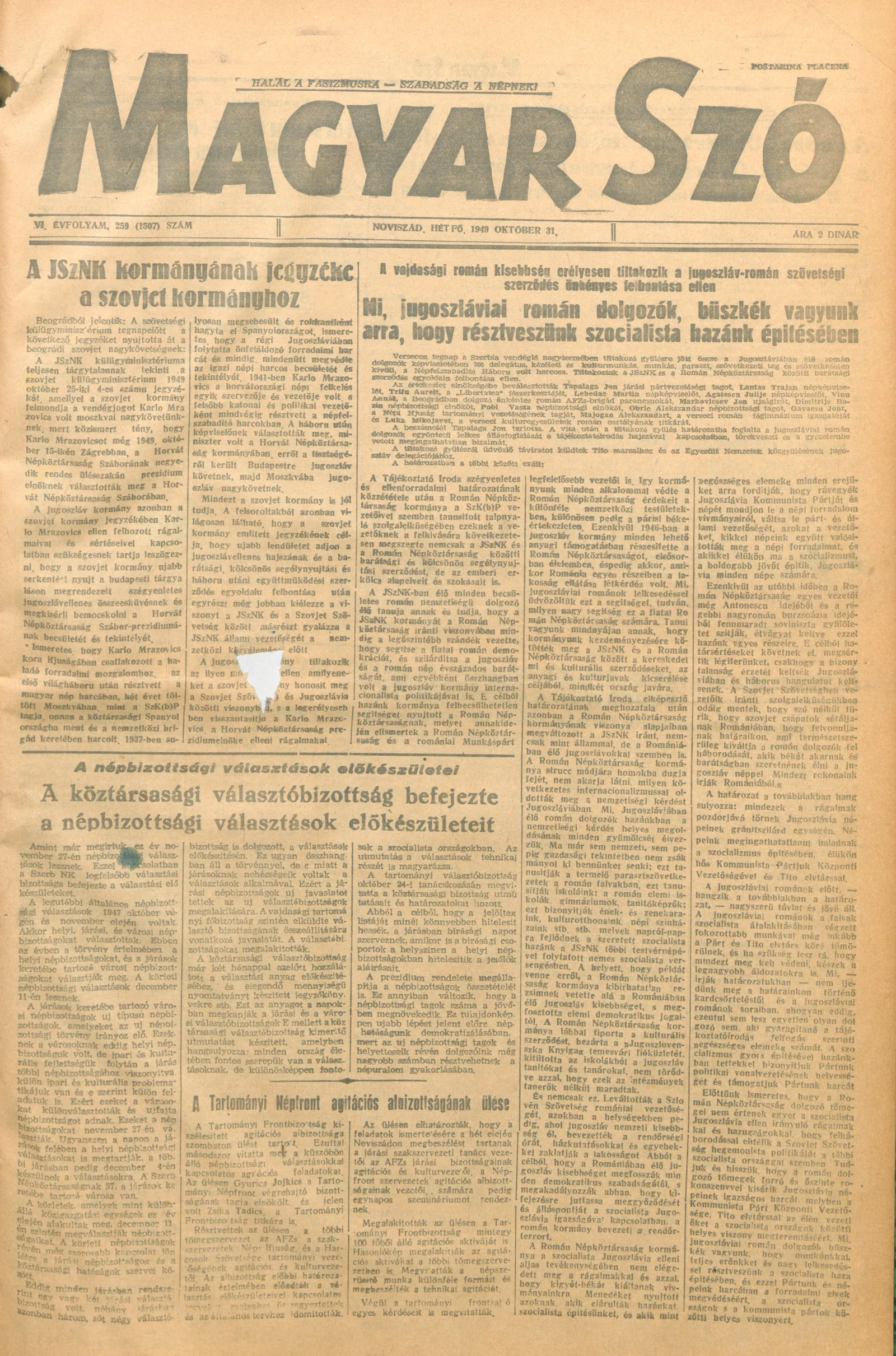 Magyar Szó, 6. évf. 1949. október 31. 259. sz. 1–4. oldal