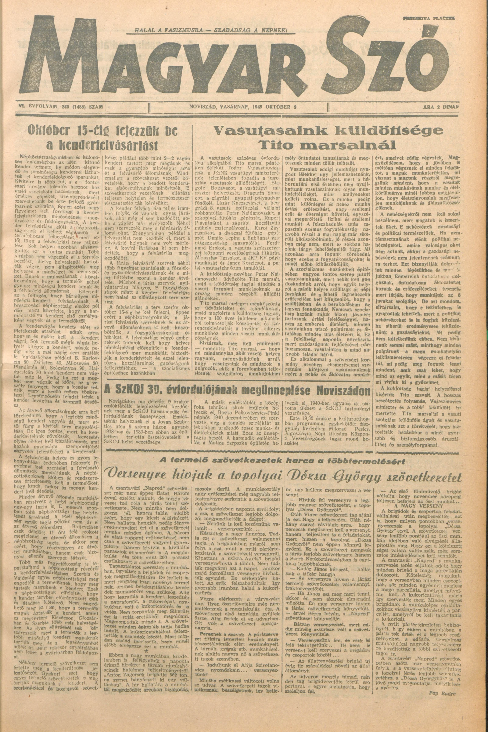 Magyar Szó, 6. évf. 1949. október 9. 240. sz. 1–4. oldal