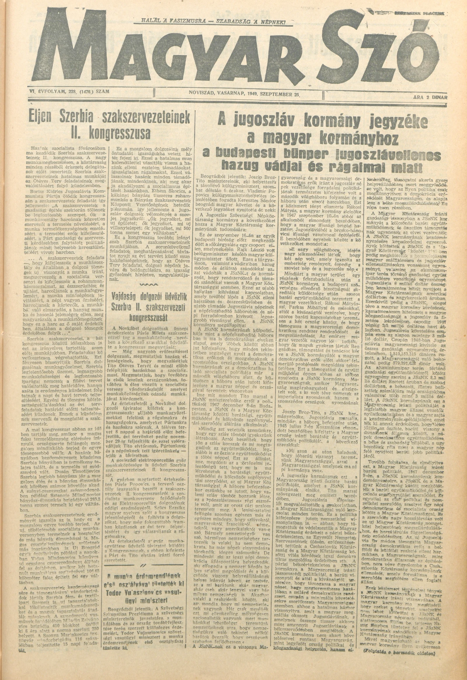 Magyar Szó, 6. évf. 1949. szeptember 25. 228. sz. 1–4. oldal
