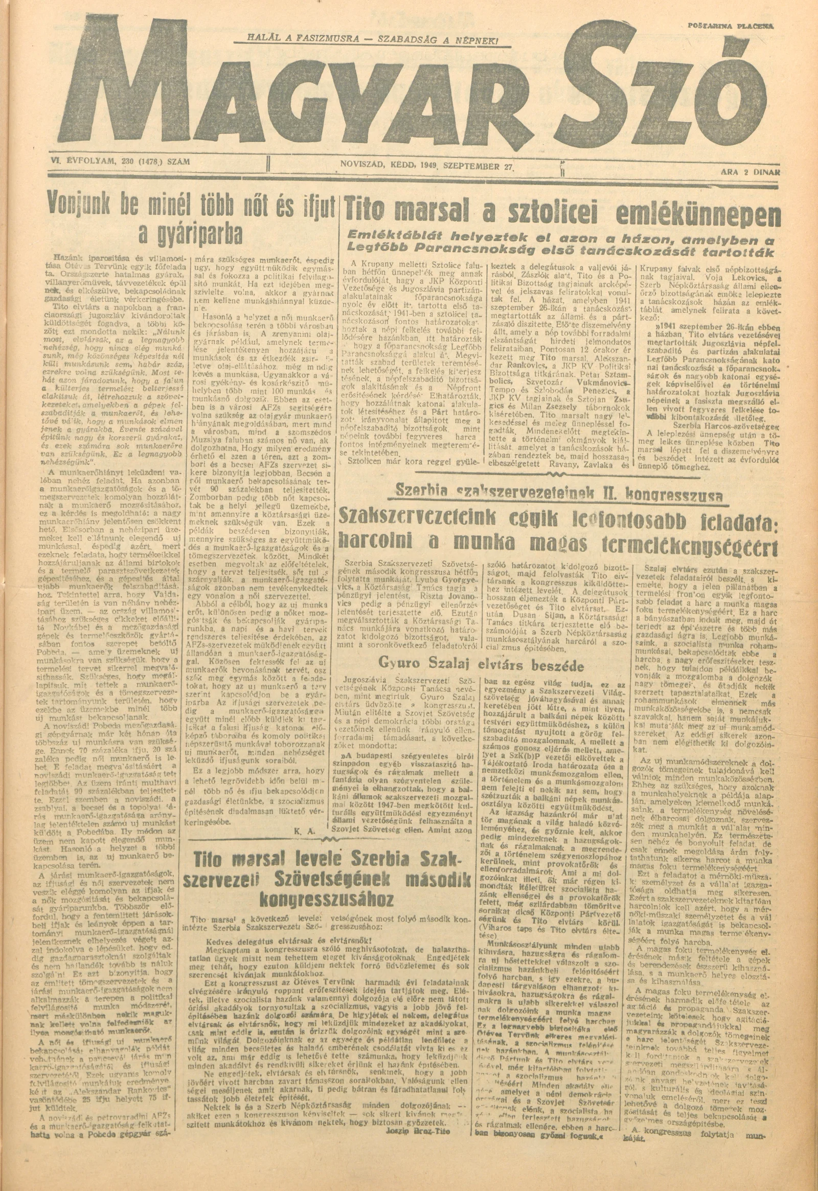 Magyar Szó, 6. évf. 1949. szeptember 27. 230. sz. 1–4. oldal