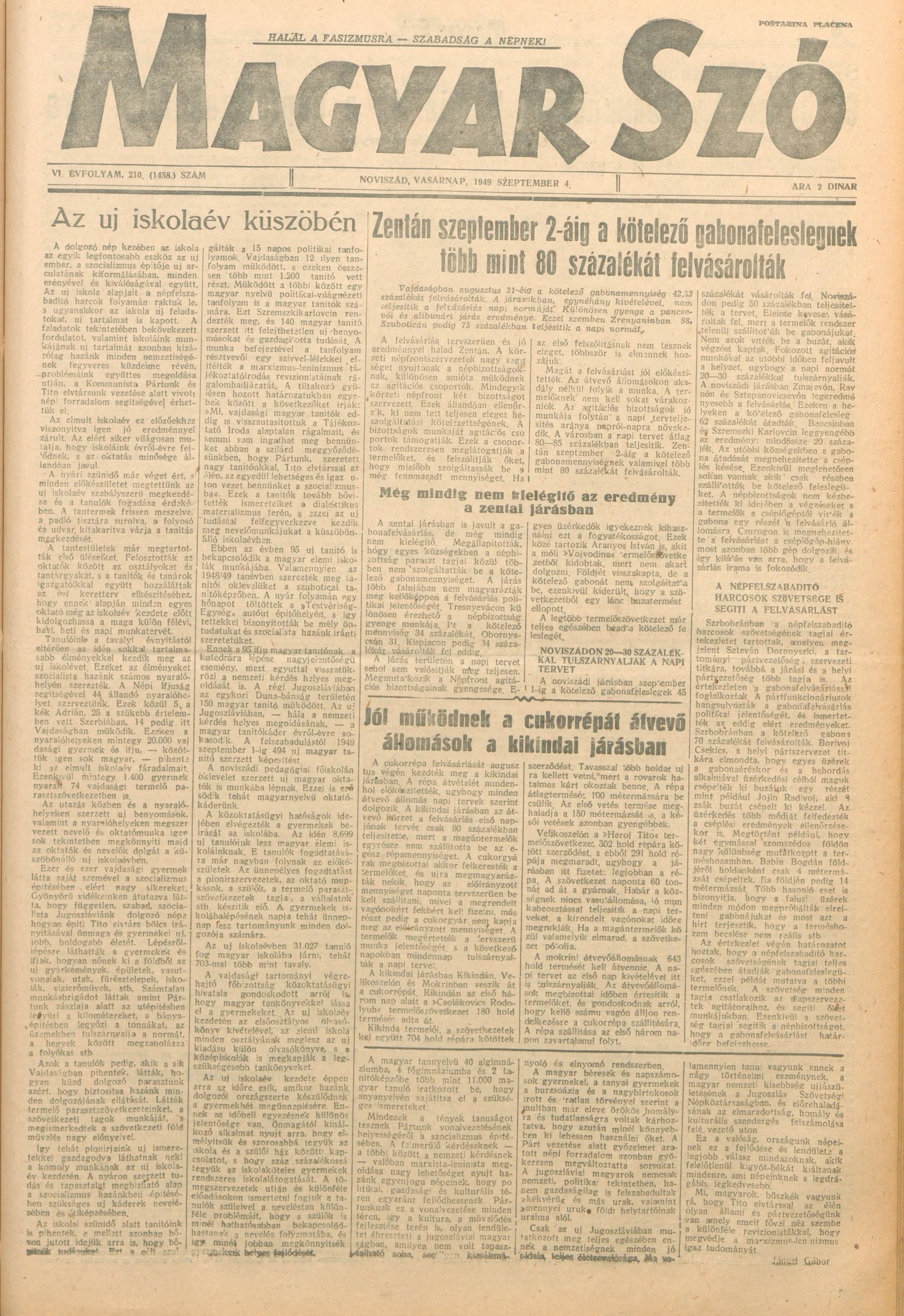 Magyar Szó, 6. évf. 1949. szeptember 4. 210. sz. 1–4. oldal