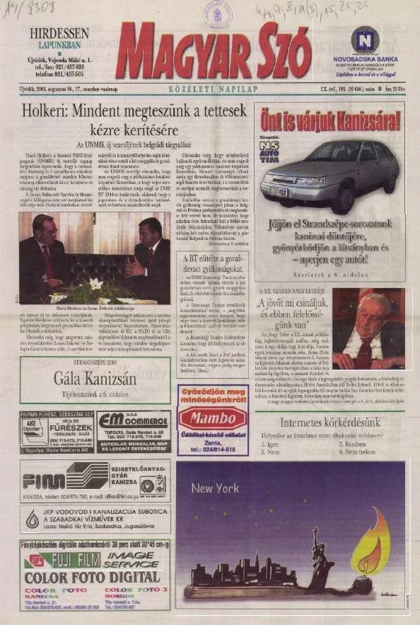 Magyar Szó, 60. évf. 2003. augusztus 16. – 17. 199. sz. 1–32. oldal