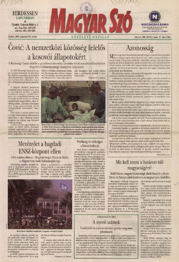 Magyar Szó, 60. évf. 2003. augusztus 20. 196. sz. 16. oldal
