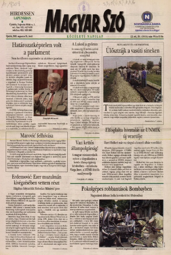 Magyar Szó, 60. évf. 2003. augusztus 26. 201. sz. 1–16. oldal