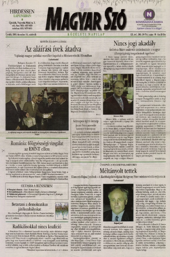 Magyar Szó, 60. évf. 2003. december 18. 299. sz. 1–20. oldal