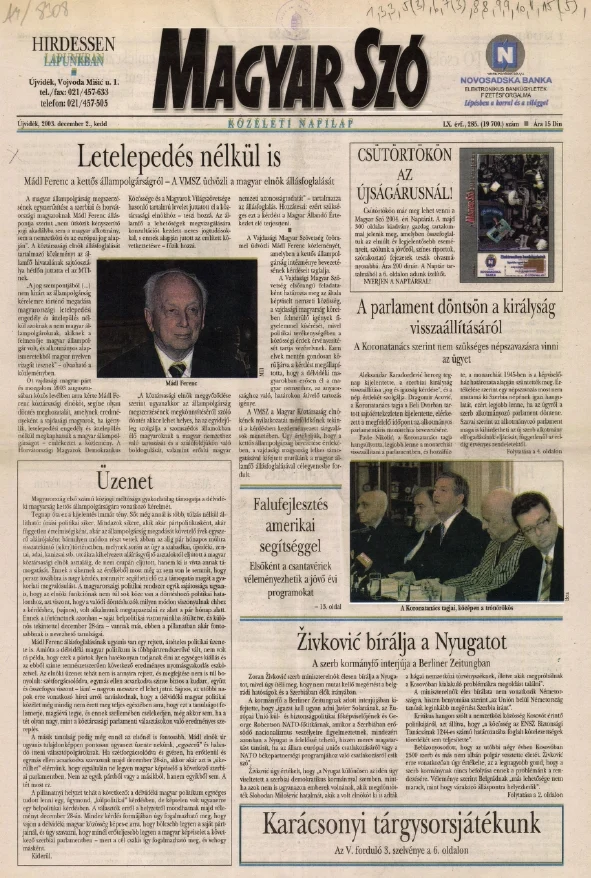 Magyar Szó, 60. évf. 2003. december 2. 285. sz. 1–20. oldal