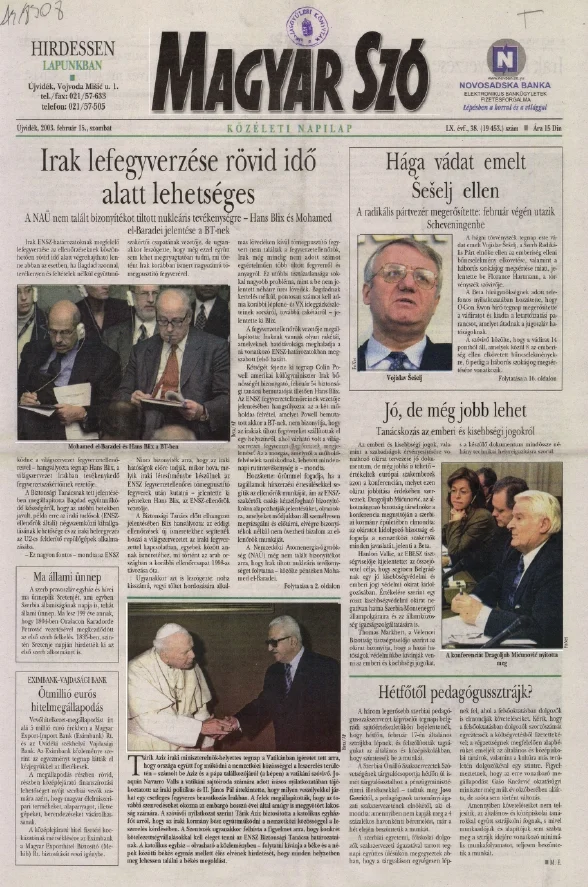 Magyar Szó, 60. évf. 2003. február 15. 38. sz. 1–16. oldal