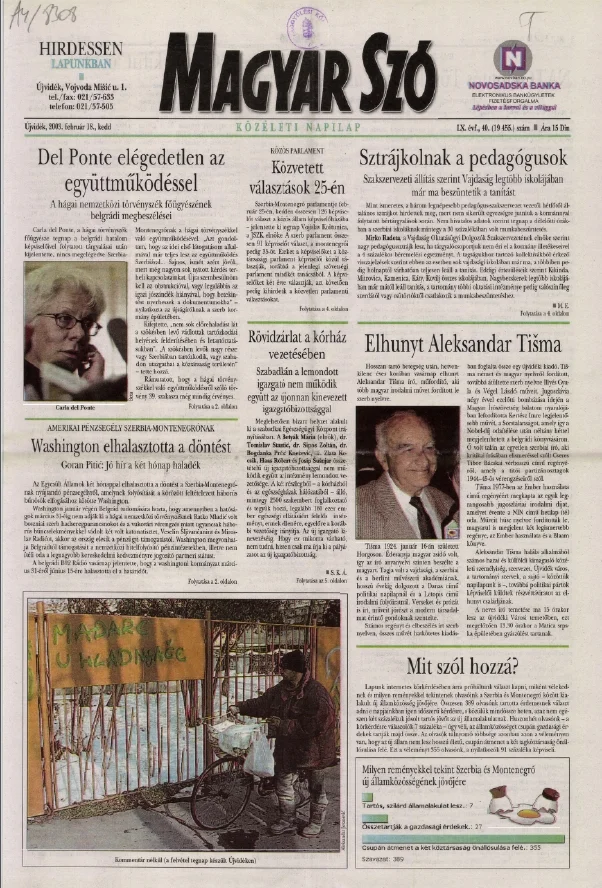 Magyar Szó, 60. évf. 2003. február 18. 40. sz. 1–16. oldal