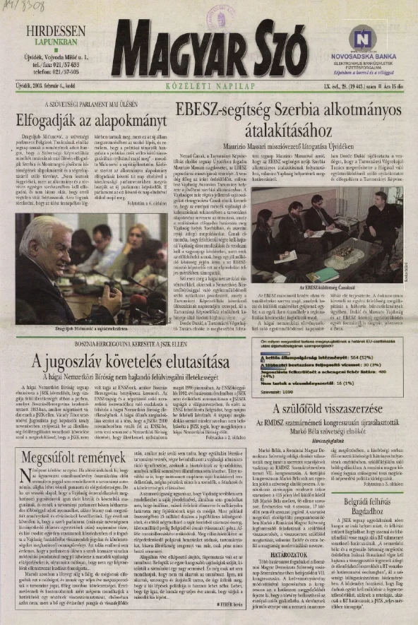 Magyar Szó, 60. évf. 2003. február 4. 28. sz. 1–16. oldal