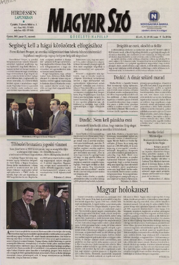 Magyar Szó, 60. évf. 2003. január 23. 18. sz. 1–16. oldal