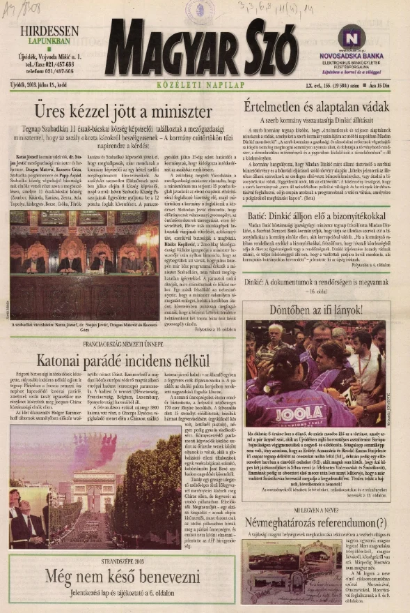 Magyar Szó, 60. évf. 2003. július 15. 165. sz. 1–16. oldal