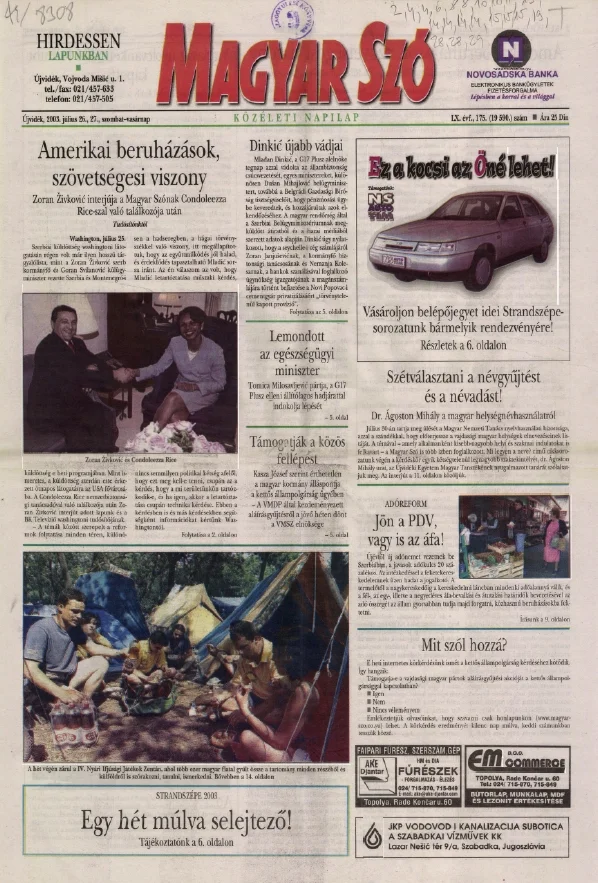 Magyar Szó, 60. évf. 2003. július 26. – 27. 175. sz. 1–36. oldal