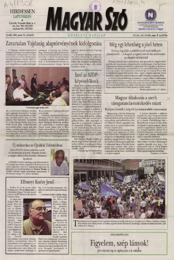Magyar Szó, 60. évf. 2003. június 19. 143. sz. 1–16. oldal
