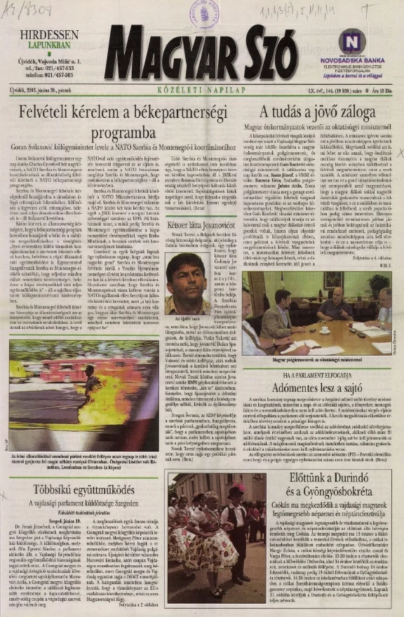 Magyar Szó, 60. évf. 2003. június 20. 144. sz. 1–16. oldal