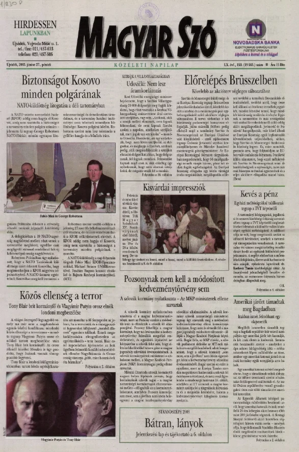 Magyar Szó, 60. évf. 2003. június 27. 150. sz. 1–16. oldal