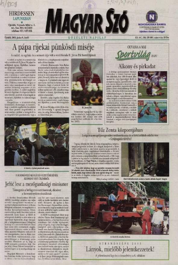 Magyar Szó, 60. évf. 2003. június 9. 134. sz. 1–16. oldal